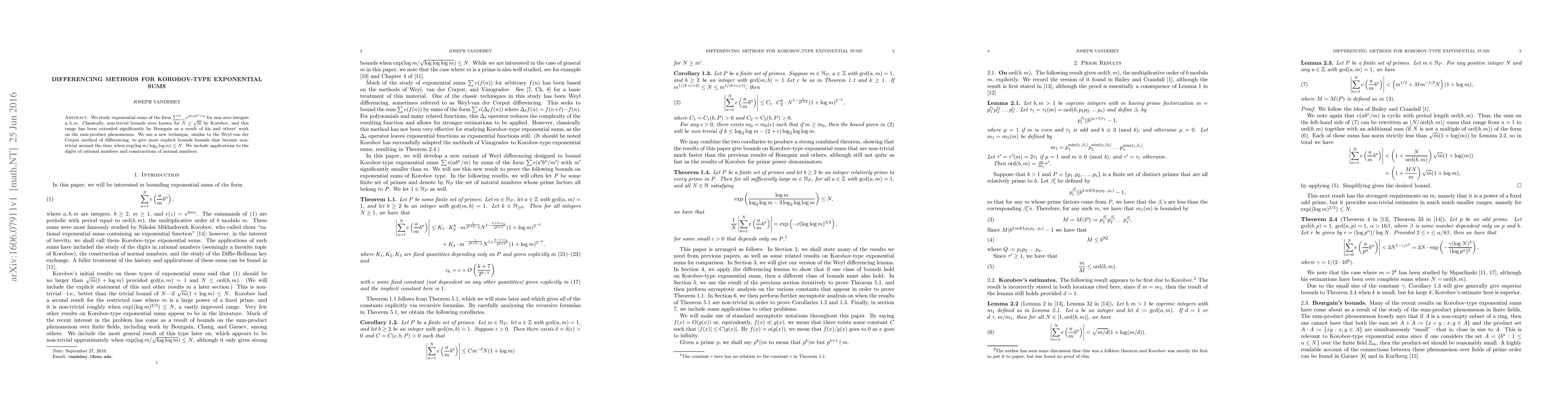 This paper introduces a novel differencing technique to derive more explicit bounds for Korobov-type exponential sums, extending the range where non-trivial bounds apply beyond the classical $\sqrt{m}$ threshold. The method is applied to study the digits of rational numbers and the construction of normal numbers.