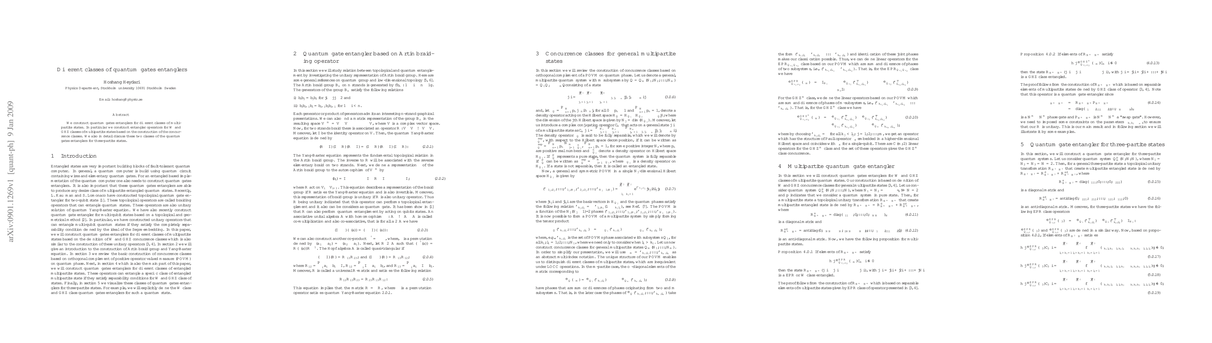 This paper constructs quantum gates entanglers for W and GHZ classes of multipartite states, focusing on three-partite systems and utilizing concurrence classes for detailed analysis. The study provides entangler operators tailored to these specific quantum state classes.