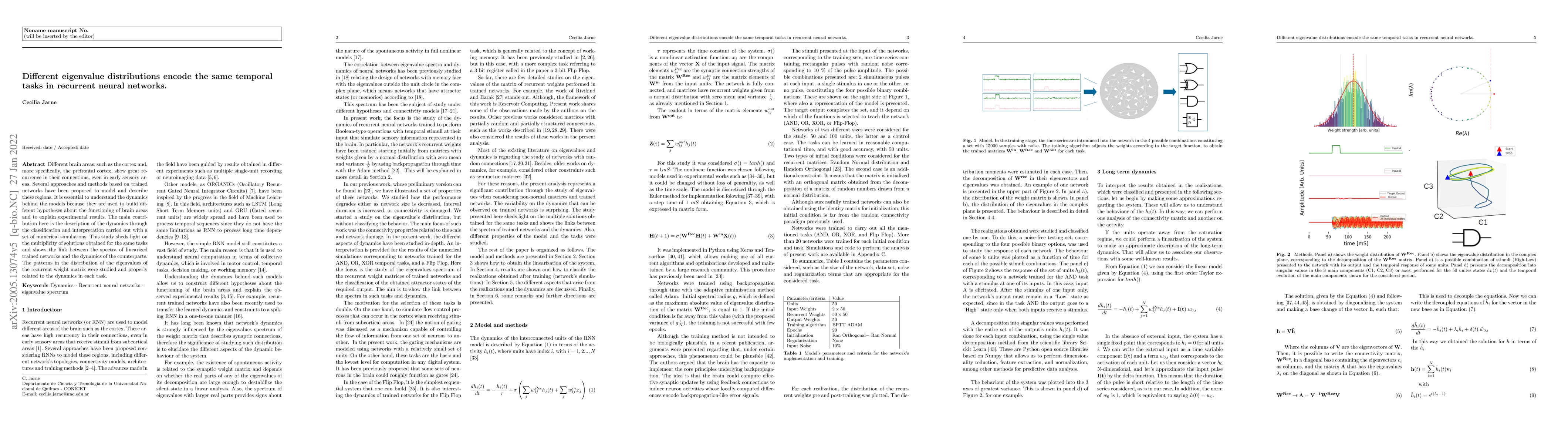 Different brain areas, such as the cortex and, more specifically, the prefrontal cortex, show great recurrence in their connections, even in early sensory areas. {Several approaches and methods based on trained networks have been proposed to model and describe these regions. It is essential to understand the dynamics behind the models because they are used to build different hypotheses about the functioning of brain areas and to explain experimental results. The main contribution here is the description of the dynamics through the classification and interpretation carried out with a set of numerical simulations. This study sheds light on the multiplicity of solutions obtained for the same tasks and shows the link between the spectra of linearized trained networks and the dynamics of the counterparts. The patterns in the distribution of the eigenvalues of the recurrent weight matrix were studied and properly related to the dynamics in each task.