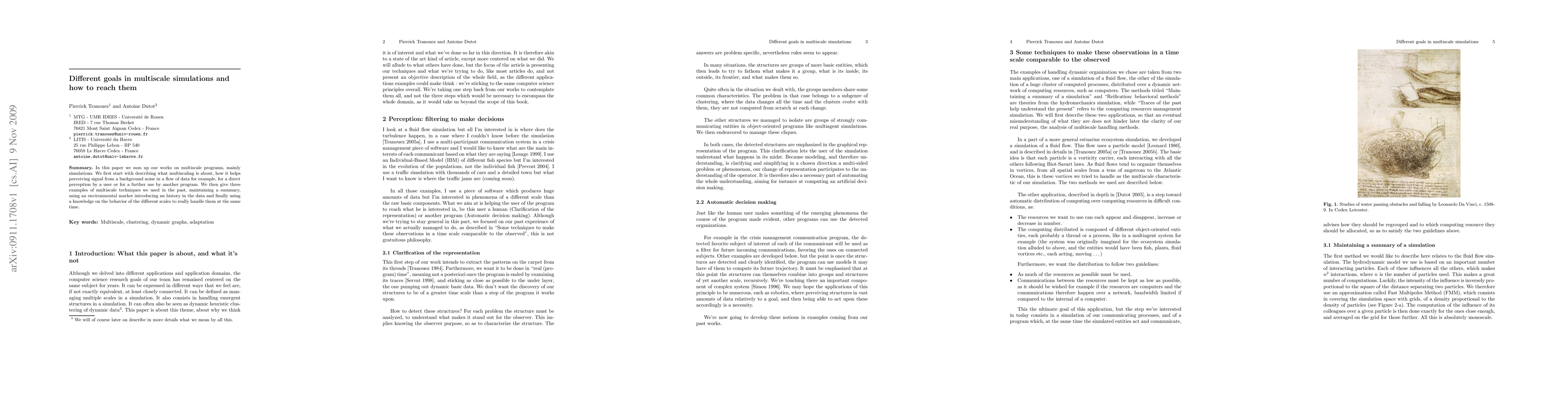 This paper summarizes previous works on multiscale simulations, explaining its role in discerning signals from noise in data streams. It outlines three techniques: summarizing data, using environmental markers for historical context, and concurrently managing scales based on known behavioral patterns.