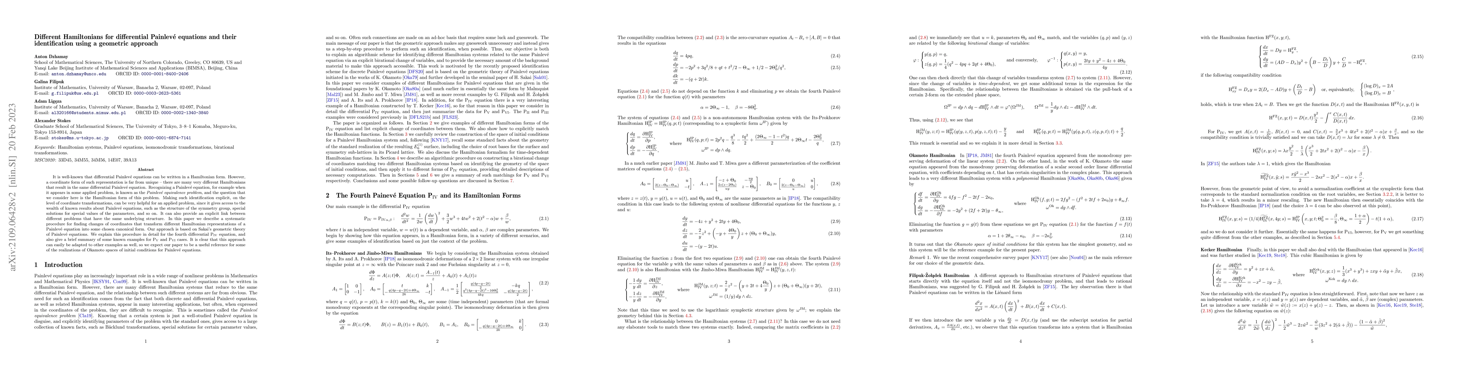It is well-known that differential Painlev\'e equations can be written in a Hamiltonian form. However, a coordinate form of such representation is far from unique -- there are many very different Hamiltonians that result in the same differential Painlev\'e equation. Recognizing a Painlev\'e equation, for example when it appears in some applied problem, is known as the \emph{Painlev\'e equivalence problem}, and the question that we consider here is the Hamiltonian form of this problem. Making such identification explicit, on the level of coordinate transformations, can be very helpful for an applied problem, since it gives access to the wealth of known results about Painlev\'e equations, such as the structure of the symmetry group, special solutions for special values of the parameters, and so on. It can also provide an explicit link between different problems that have the same underlying structure. In this paper we describe a systematic procedure for finding changes of coordinates that trasform different Hamiltonian representations of a Painlev\'e equation into some chosen canonical form. Our approach is based on Sakai's geometric theory of Painlev\'e equations. We explain this procedure in detail for the fourth differential ${\text{P}_{\mathrm{IV}}}$ equation, and also give a brief summary of some known examples for ${\text{P}_{\mathrm{V}}}$ and ${\text{P}_{\mathrm{VI}}}$ cases. It is clear that this approach can easily be adapted to other examples as well, so we expect our paper to be a useful reference for some of the realizations of Okamoto spaces of initial conditions for Painlev\'e equations.