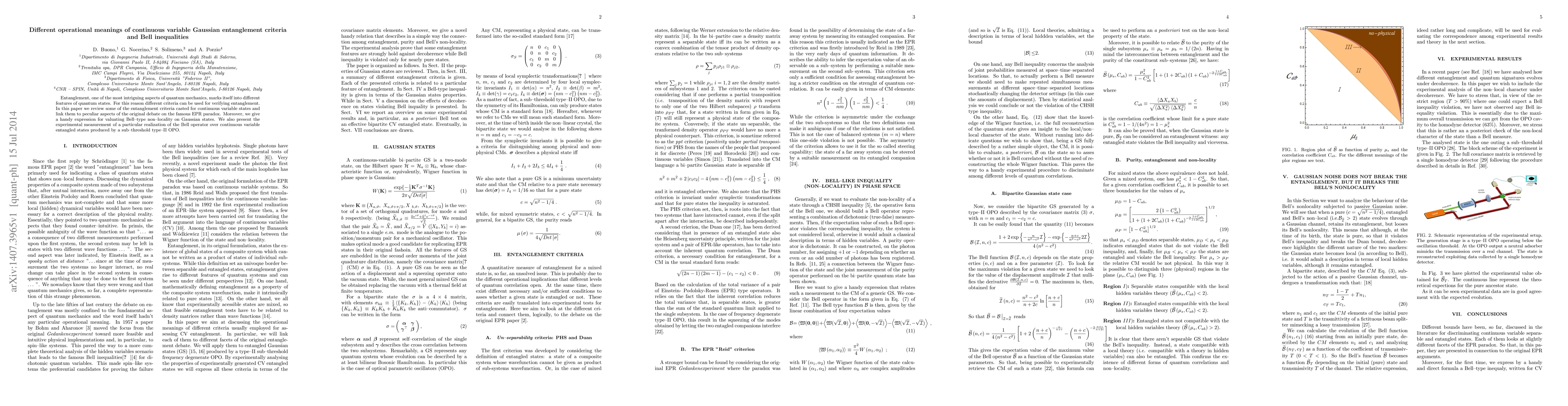 Entanglement, one of the most intriguing aspects of quantum mechanics, marks itself into different features of quantum states. For this reason different criteria can be used for verifying entanglement. In this paper we review some of the entanglement criteria casted for continuous variable states and link them to peculiar aspects of the original debate on the famous EPR paradox. Moreover, we give a handy expression for valuating Bell-type non-locality on Gaussian states. We also present the experimental measurement of a particular realization of the Bell operator over continuous variable entangled states produced by a sub-threshold type-II OPO.