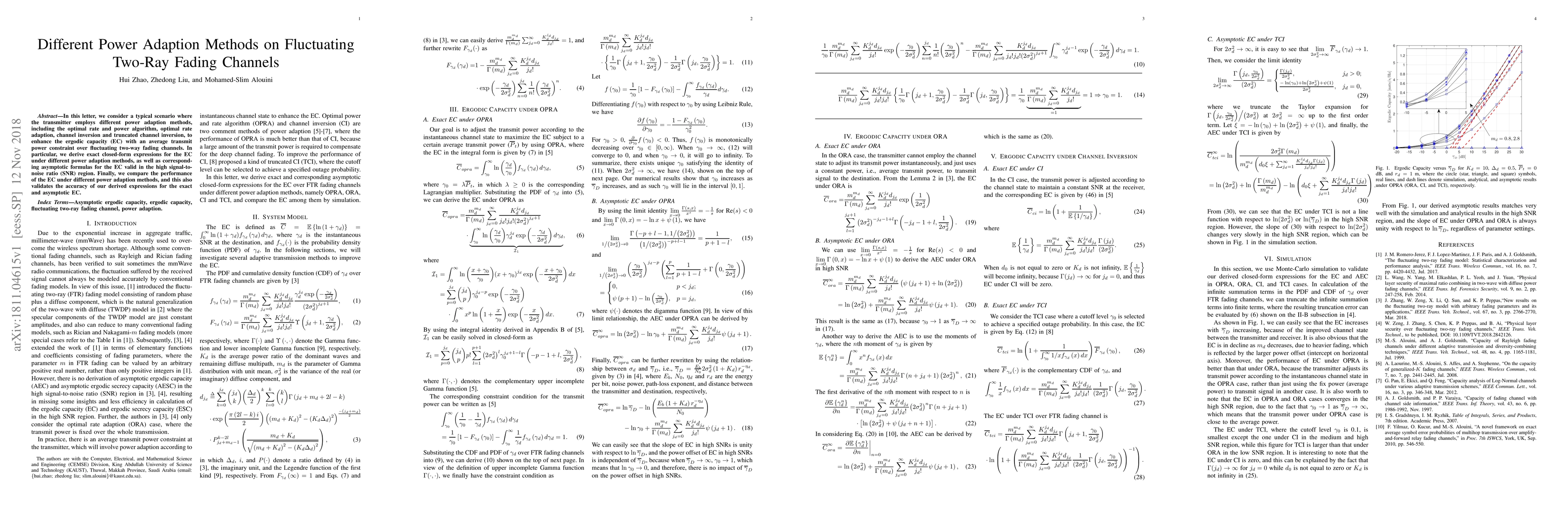 In this letter, we consider a typical scenario where the transmitter employs different power adaption methods, including the optimal rate and power algorithm, optimal rate adaption, channel inversion and truncated channel inversion, to enhance the ergodic capacity (EC) with an average transmit power constraint over fluctuating two-way fading channels. In particular, we derive exact closed-form expressions for the EC under different power adaption methods, as well as corresponding asymptotic formulas for the EC valid in the high signal-to-noise ratio (SNR) region. Finally, we compare the performance of the EC under different power adaption methods, and this also validates the accuracy of our derived expressions for the exact and asymptotic EC.