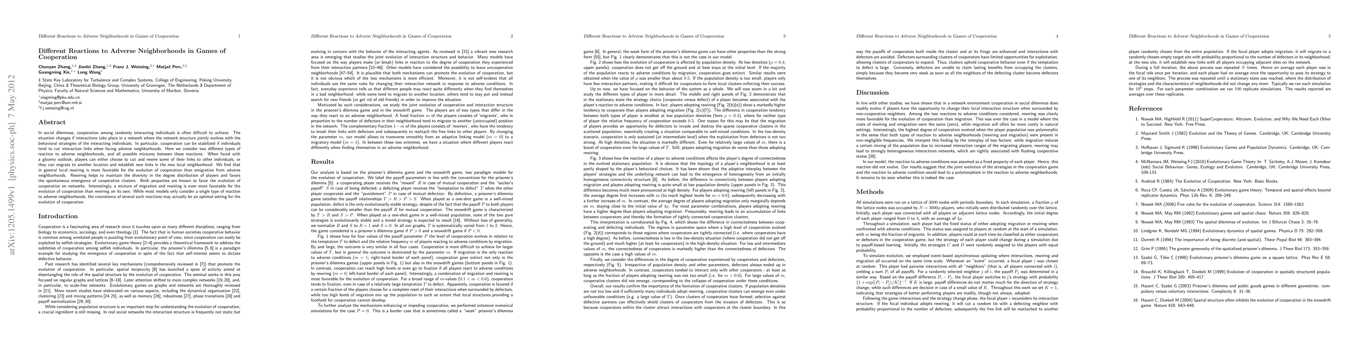 In social dilemmas, cooperation among randomly interacting individuals is often difficult to achieve. The situation changes if interactions take place in a network where the network structure jointly evolves with the behavioral strategies of the interacting individuals. In particular, cooperation can be stabilized if individuals tend to cut interaction links when facing adverse neighborhoods. Here we consider two different types of reaction to adverse neighborhoods, and all possible mixtures between these reactions. When faced with a gloomy outlook, players can either choose to cut and rewire some of their links to other individuals, or they can migrate to another location and establish new links in the new local neighborhood. We find that in general local rewiring is more favorable for the evolution of cooperation than emigration from adverse neighborhoods. Rewiring helps to maintain the diversity in the degree distribution of players and favors the spontaneous emergence of cooperative clusters. Both properties are known to favor the evolution of cooperation on networks. Interestingly, a mixture of migration and rewiring is even more favorable for the evolution of cooperation than rewiring on its own. While most models only consider a single type of reaction to adverse neighborhoods, the coexistence of several such reactions may actually be an optimal setting for the evolution of cooperation.