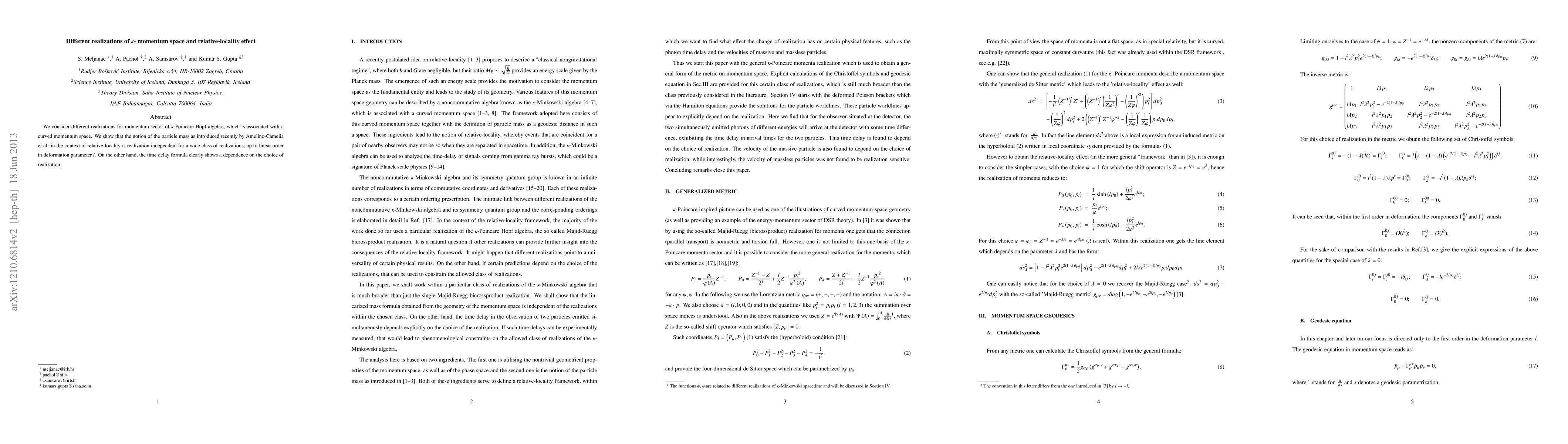 This paper explores various realizations of the kappa-momentum space in kappa-Poincare Hopf algebra, demonstrating that particle mass remains consistent across realizations up to linear order, while time delay formulas vary with different realizations.