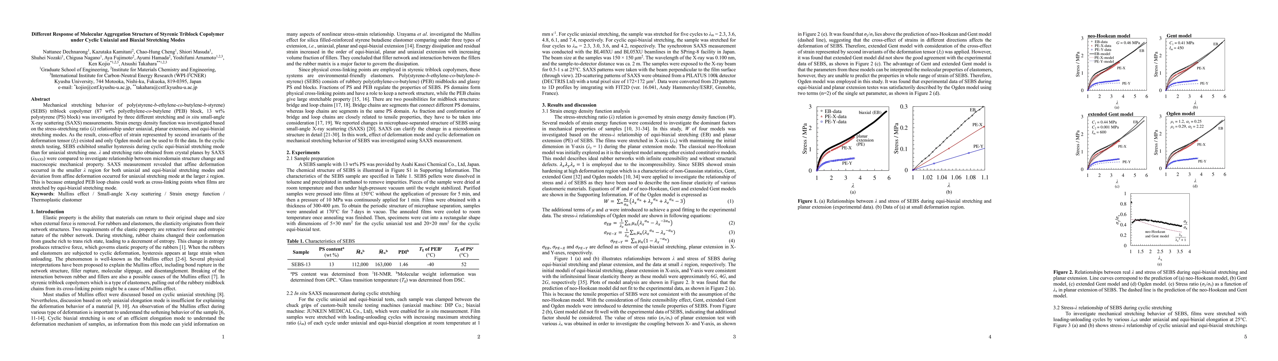 This study investigates the mechanical behavior of SEBS triblock copolymer under cyclic uniaxial and equi-biaxial stretching using in situ small angle X-ray scattering (SAXS). Results show that SEBS exhibits smaller hysteresis under cyclic equi-biaxial stretching compared to uniaxial stretching, indicating different molecular aggregation structures and deformation mechanisms.