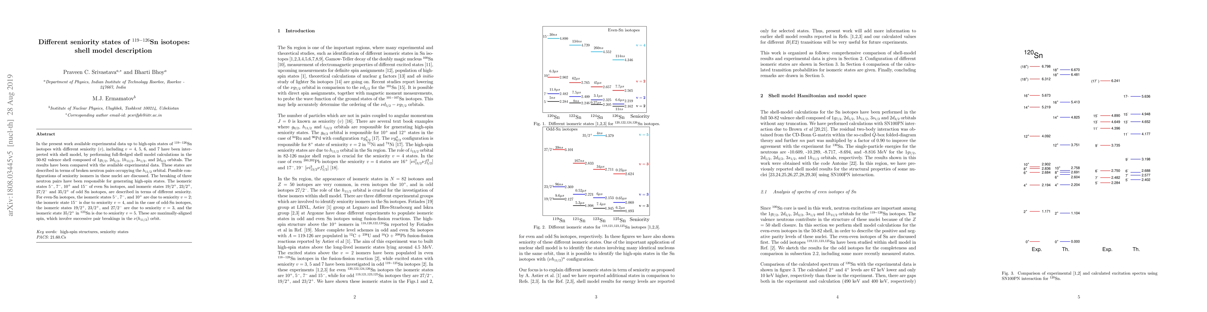 In the present work available experimental data up to high-spin states of $^{119-126}$Sn isotopes with different seniority ($v$), including $v$ = 4, 5, 6, and 7 have been interpreted with shell model, by performing full-fledged shell model calculations in the 50-82 valence shell composed of $1g_{7/2}$, $2d_{5/2}$, $1h_{11/2}$, $3s_{1/2}$, and $2d_{3/2}$ orbitals. The results have been compared with the available experimental data. These states are described in terms of broken neutron pairs occupying the $h_{11/2}$ orbital. Possible configurations of seniority isomers in these nuclei are discussed. The breaking of three neutron pairs have been responsible for generating high-spin states. The isomeric states $5^-$, $7^-$, $10^+$ and $15^-$ of even Sn isotopes, and isomeric states $19/2^+$, $23/2^+$, $27/2^-$ and $35/2^+$ of odd Sn isotopes, are described in terms of different seniority. For even-Sn isotopes, the isomeric states $5^-$, $7^-$, and $10^+$ are due to seniority $v$ = 2; the isomeric state $15^-$ is due to seniority $v$ = 4, and in the case of odd-Sn isotopes, the isomeric states $19/2^+$, $23/2^+$, and $27/2^-$ are due to seniority $v$ = 3, and the isomeric state $35/2^+$ in $^{123}$Sn is due to seniority $v$ = 5. These are maximally-aligned spin, which involve successive pair breakings in the $\nu (h_{11/2})$ orbit.