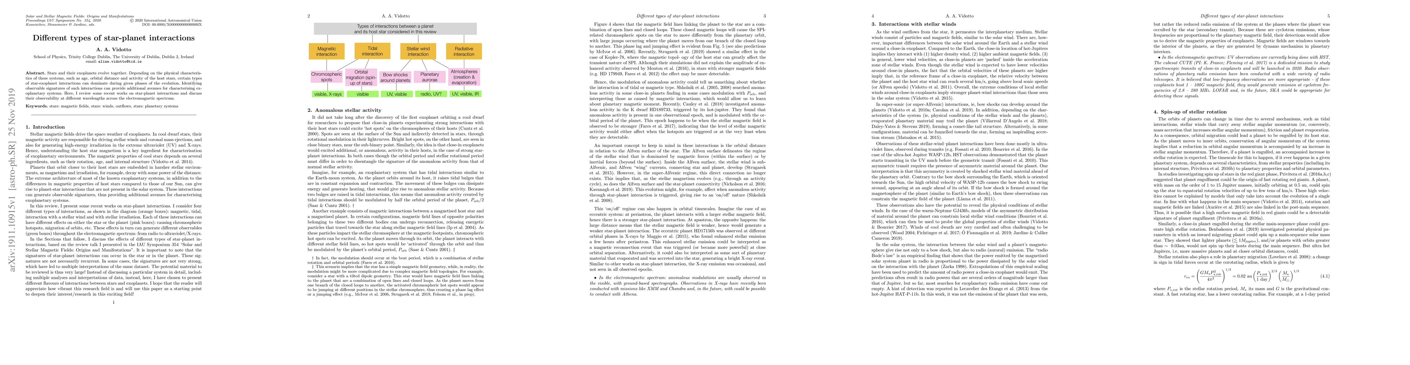 Stars and their exoplanets evolve together. Depending on the physical characteristics of these systems, such as age, orbital distance and activity of the host stars, certain types of star-exoplanet interactions can dominate during given phases of the evolution. Identifying observable signatures of such interactions can provide additional avenues for characterising exoplanetary systems. Here, I review some recent works on star-planet interactions and discuss their observability at different wavelengths across the electromagnetic spectrum.