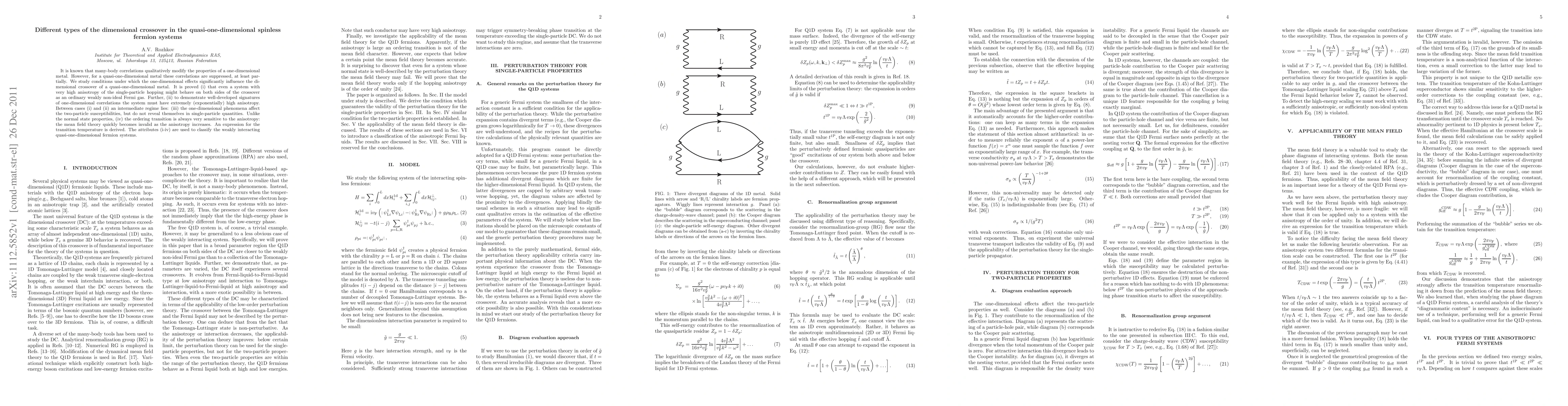 This paper explores the dimensional crossover in quasi-one-dimensional spinless fermion systems, showing that high anisotropy can lead to one-dimensional effects. It identifies four regimes: (i) high anisotropy yet behaving like a weakly non-ideal Fermi gas, (ii) extreme anisotropy revealing one-dimensional correlations, (iii) one-dimensional phenomena affecting two-particle susceptibilities without single-particle quantities, and (iv) sensitivity to anisotropy in ordering transitions, with a derived expression for transition temperature.