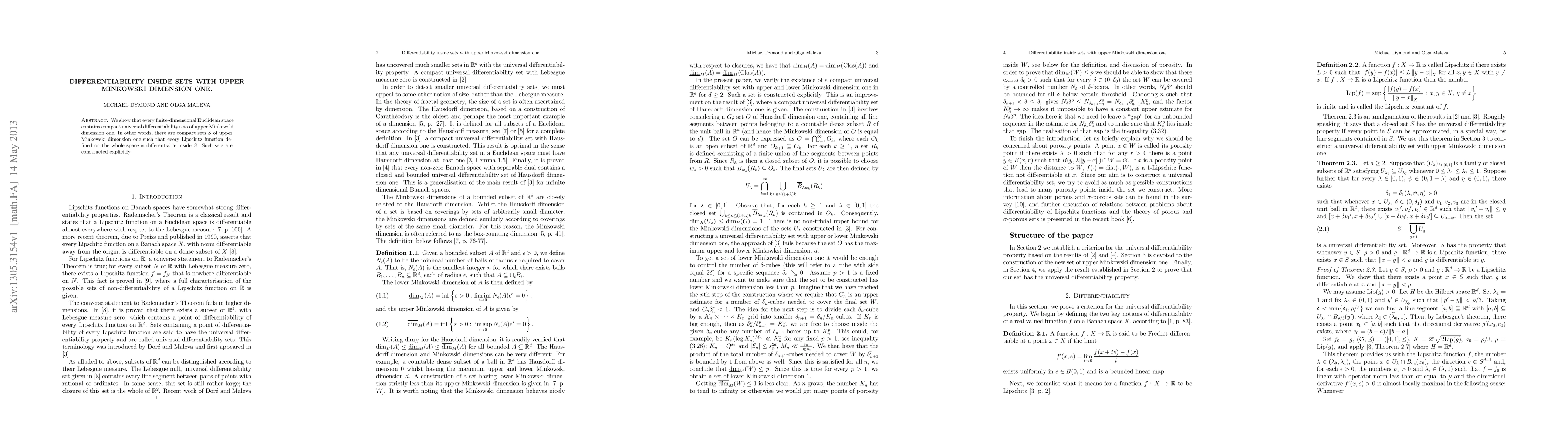 This paper demonstrates the existence of compact sets in finite-dimensional Euclidean spaces with upper Minkowski dimension one where every Lipschitz function is differentiable. Explicit constructions of these universal differentiability sets are provided.