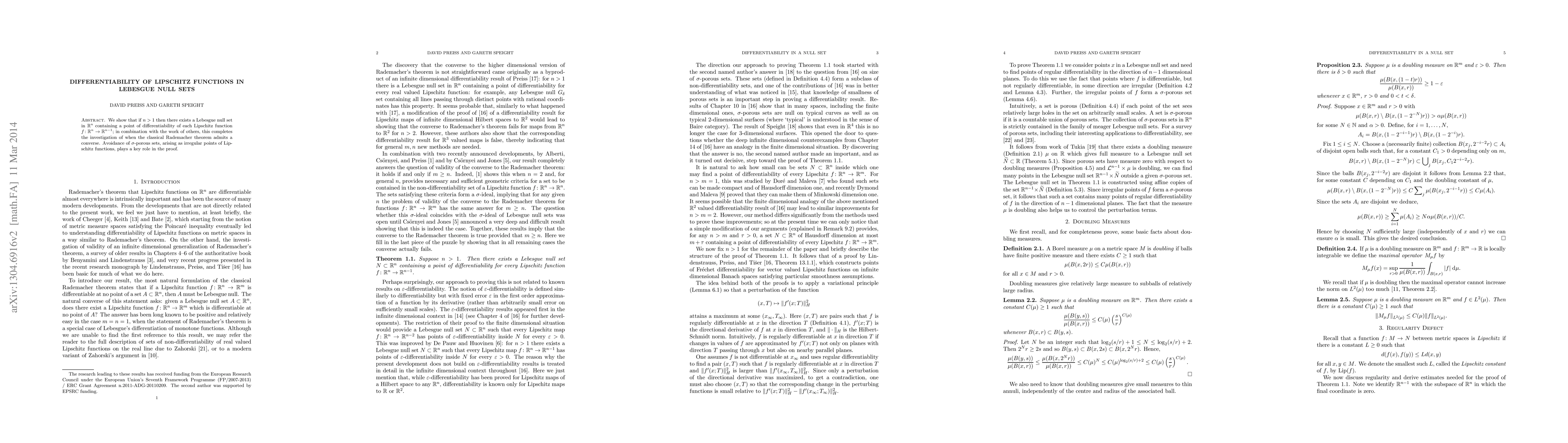 This paper demonstrates that for dimensions n>1, there exists a Lebesgue null set in R^n that includes a point of differentiability for every Lipschitz function from R^n to R^(n-1), thereby completing the study of when the classical Rademacher theorem has a converse. The proof leverages the avoidance of sigma-porous sets, which are irregular points of Lipschitz functions.