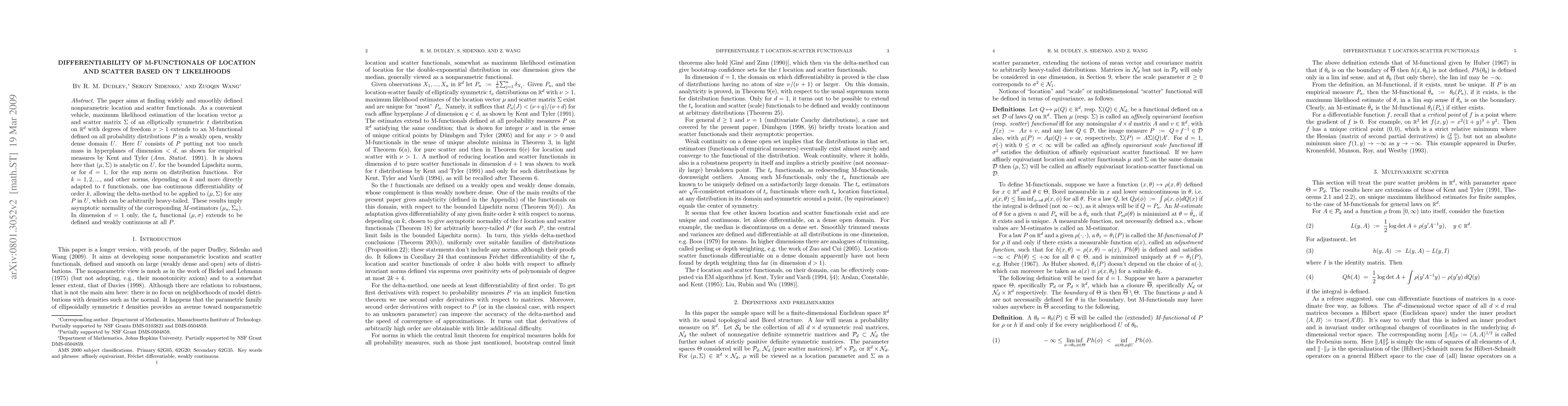 The paper explores the differentiability of M-functionals for location and scatter based on t-likelihoods, showing they are analytic and continuously differentiable under certain norms, allowing for the application of the delta-method and proving asymptotic normality of M-estimators. Notably, in one dimension, these functionals remain weakly continuous for all t.