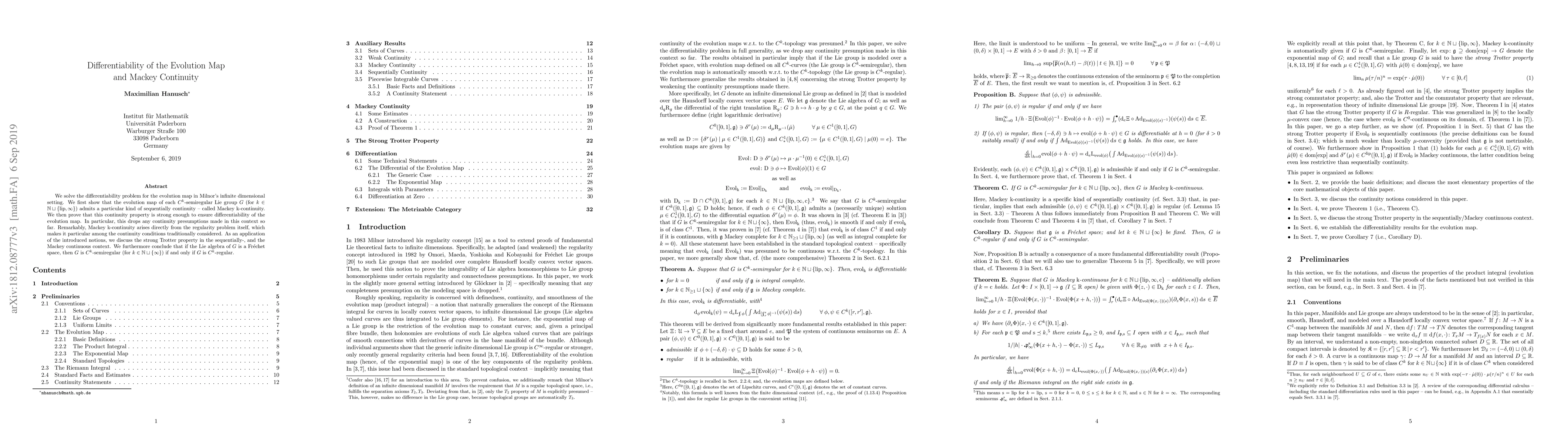 We solve the differentiability problem for the evolution map in Milnor's infinite dimensional setting. We first show that the evolution map of each $C^k$-semiregular Lie group $G$ (for $k\in \mathbb{N}\sqcup\{\mathrm{lip},\infty\}$) admits a particular kind of sequentially continuity $-$ called Mackey k-continuity. We then prove that this continuity property is strong enough to ensure differentiability of the evolution map. In particular, this drops any continuity presumptions made in this context so far. Remarkably, Mackey k-continuity arises directly from the regularity problem itself, which makes it particular among the continuity conditions traditionally considered. As an application of the introduced notions, we discuss the strong Trotter property in the sequentially-, and the Mackey continuous context. We furthermore conclude that if the Lie algebra of $G$ is a Fr\'{e}chet space, then $G$ is $C^k$-semiregular (for $k\in \mathbb{N}\sqcup\{\infty\}$) if and only if $G$ is $C^k$-regular.
