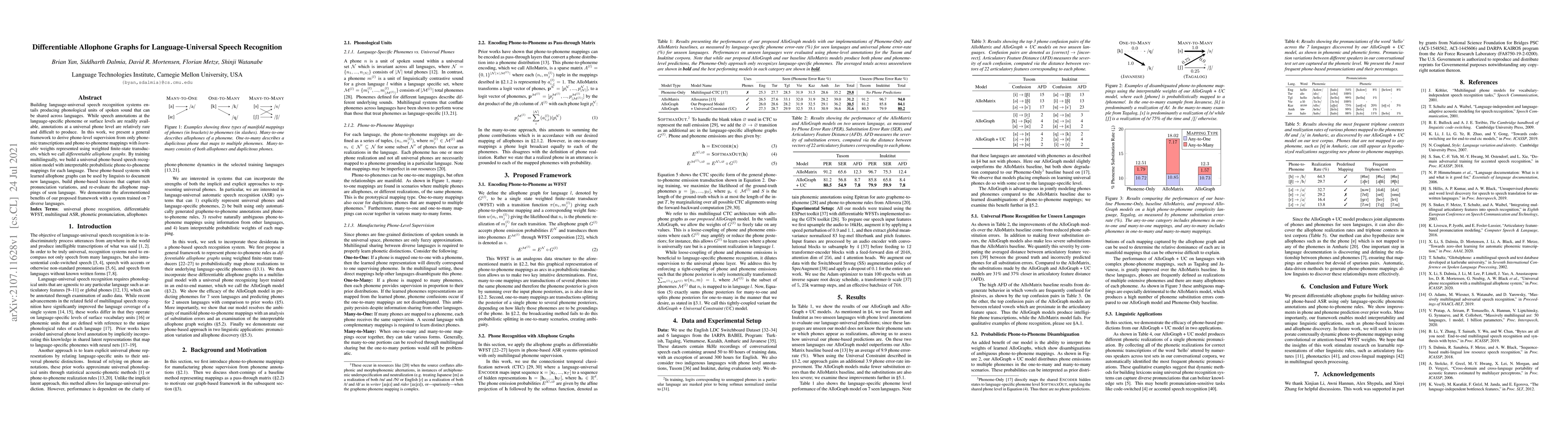 The paper introduces differentiable allophone graphs, a novel framework for building universal phone-based automatic speech recognition (ASR) systems using only language-specific phonemic annotations and phone-to-phoneme rules.