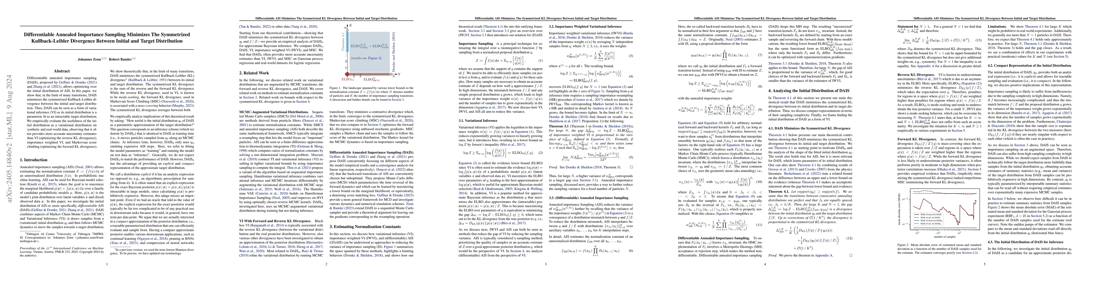 This paper demonstrates that differentiable annealed importance sampling (DAIS) minimizes the Jensen-Shannon divergence between initial and target distributions, functioning as a form of variational inference. Empirical evaluations on synthetic and real data show DAIS provides more accurate uncertainty estimates compared to standard VI and other methods.