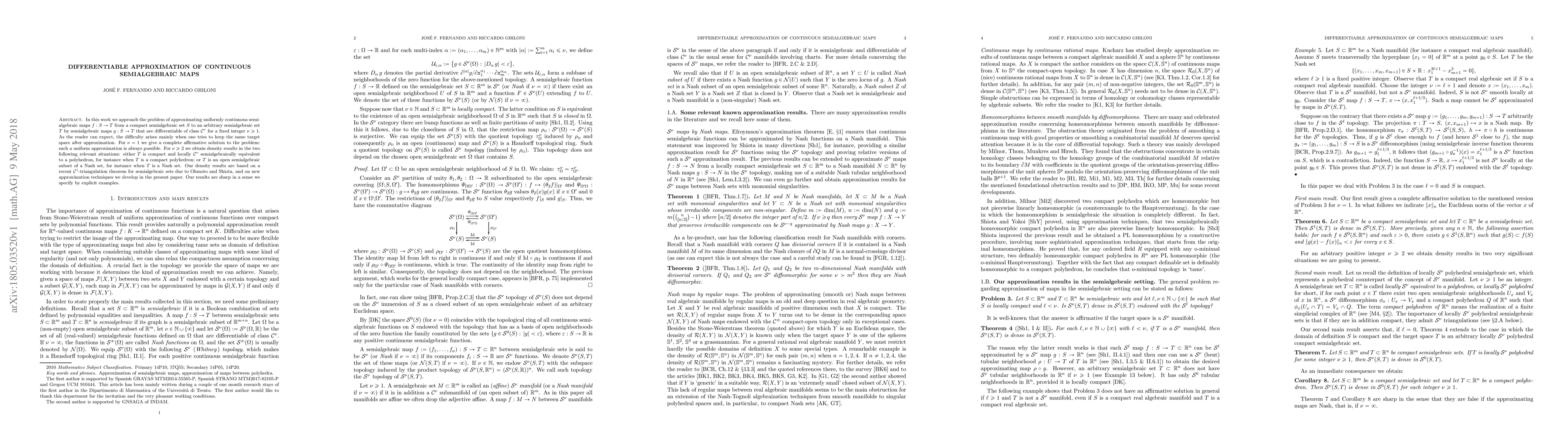This paper explores the approximation of uniformly continuous semialgebraic maps with differentiable semialgebraic maps of class ${\mathcal C}^\nu$. For $\nu=1$, it proves that such approximations are always possible, while for $\nu \geq 2$, it provides density results under specific conditions on the target set $T$.