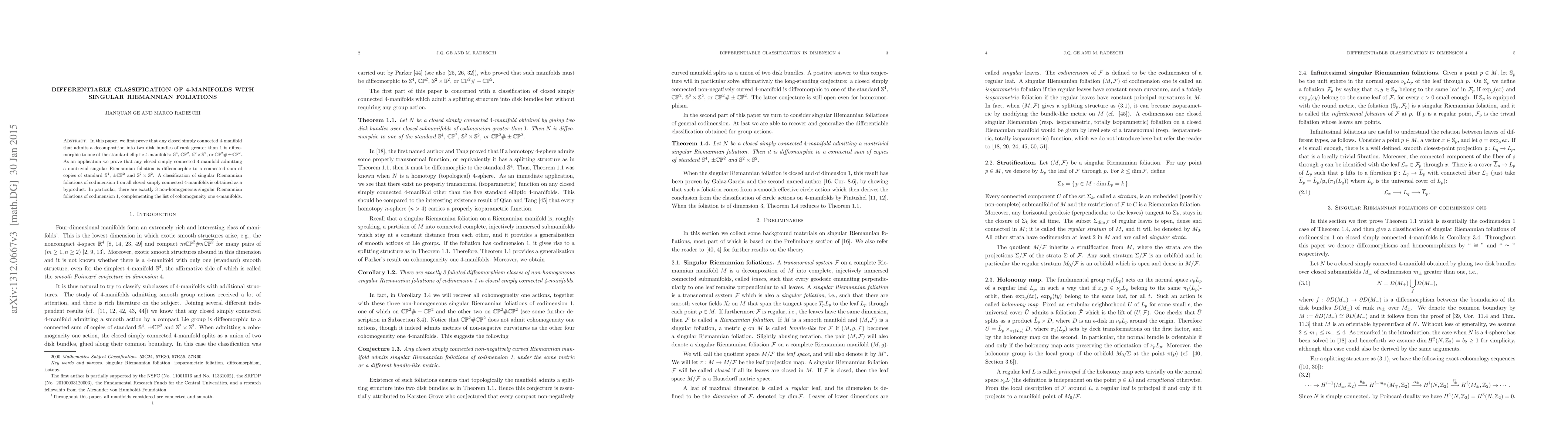 This paper classifies closed simply connected 4-manifolds admitting singular Riemannian foliations, showing they are diffeomorphic to standard examples. It also identifies exactly three non-homogeneous singular Riemannian foliations of codimension 1 on these manifolds.