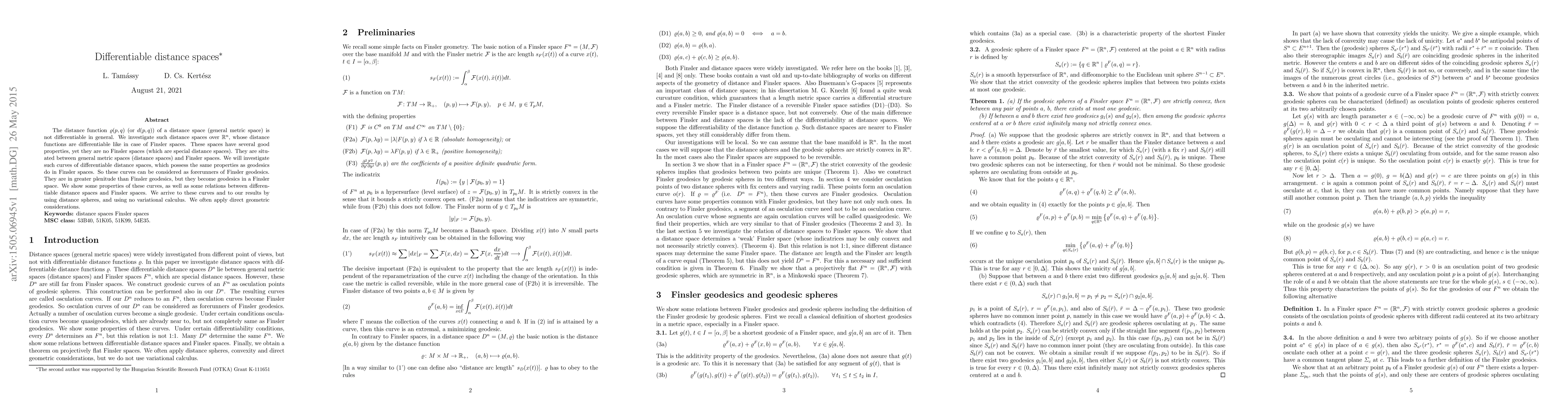 This paper explores differentiable distance spaces over $\mathbb R^n$ where the distance function is differentiable, situated between general metric spaces and Finsler spaces. It investigates curves in these spaces that exhibit properties akin to Finsler geodesics, using direct geometric considerations without variational calculus.