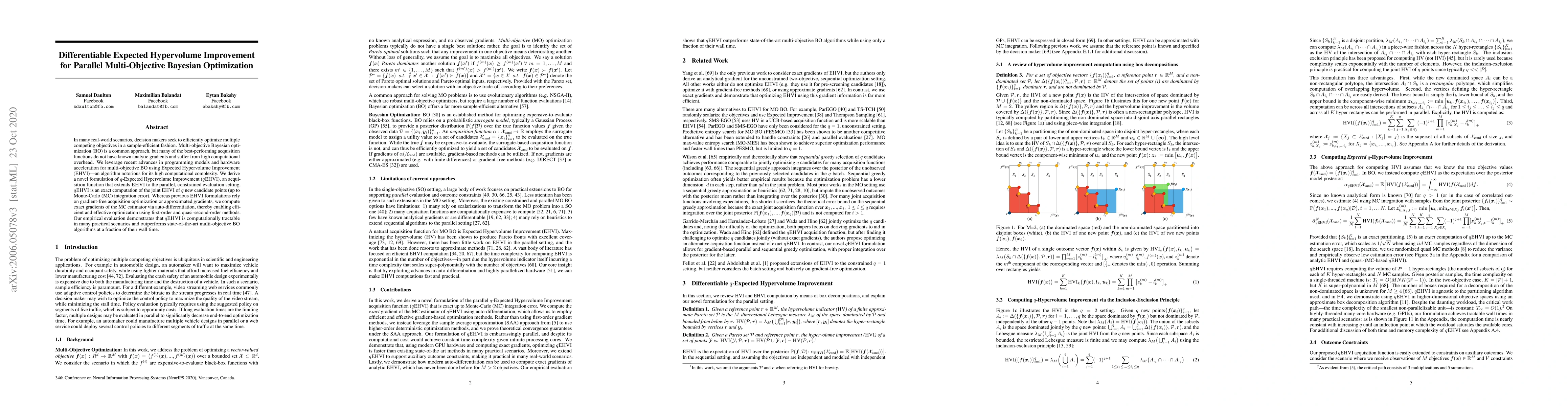 This paper introduces q-Expected Hypervolume Improvement (qEHVI), a novel acquisition function for parallel multi-objective Bayesian optimization that leverages auto-differentiation for exact gradient computation. It outperforms existing methods by significantly reducing computational overhead and achieving better optimization results.