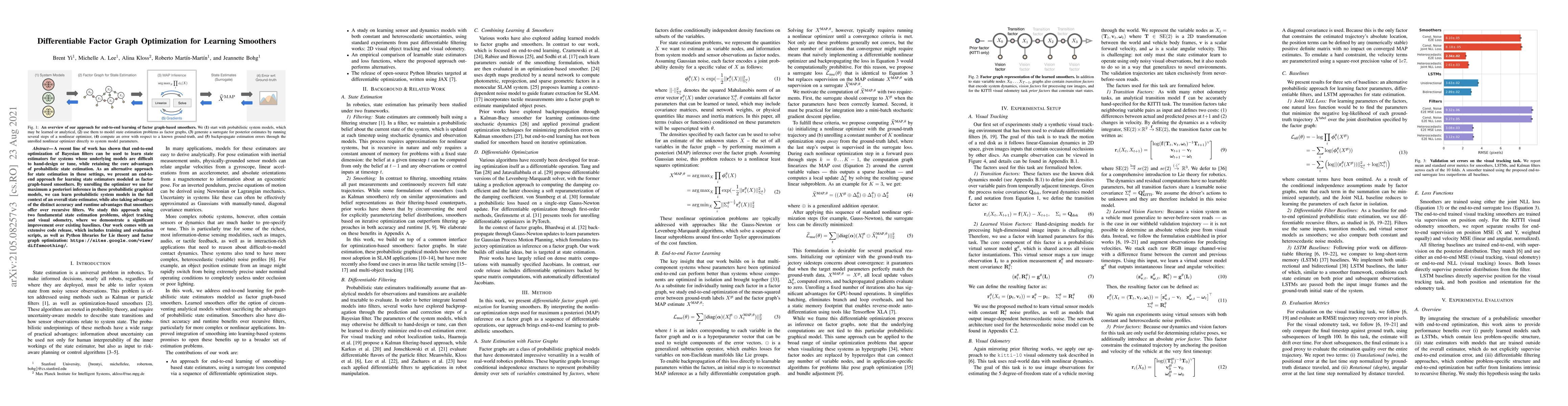 Researchers develop an end-to-end approach to learn state estimators using factor graph-based smoothers, achieving significant improvements over existing baselines in object tracking and visual odometry.