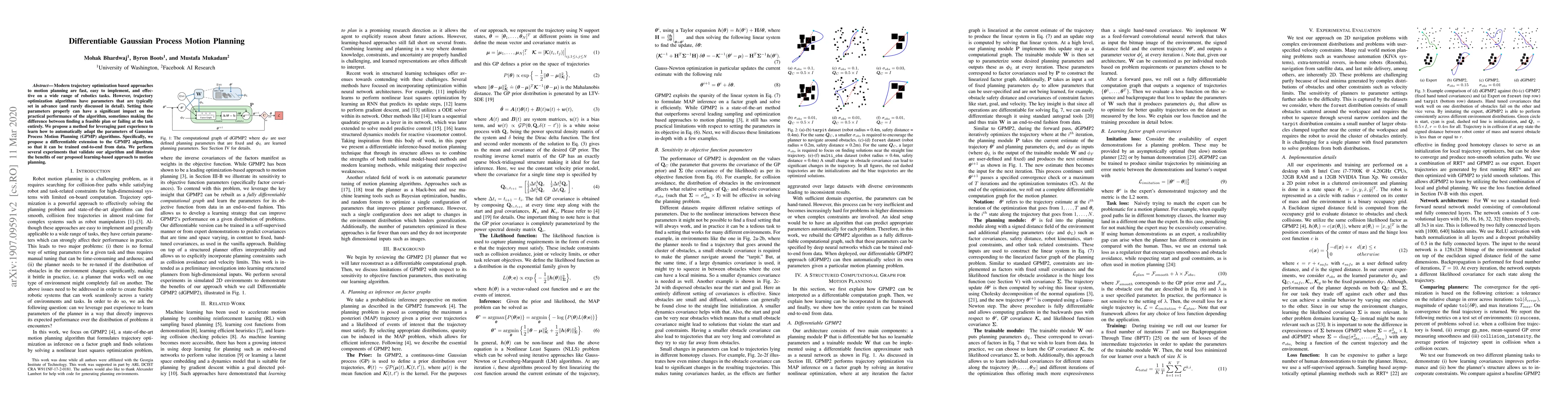 This paper proposes a differentiable extension to Gaussian Process Motion Planning (GPMP) algorithms to automatically adapt parameters based on past experience, enabling end-to-end training from data. Experiments demonstrate the benefits of this learning-based approach in improving the performance of motion planning algorithms.