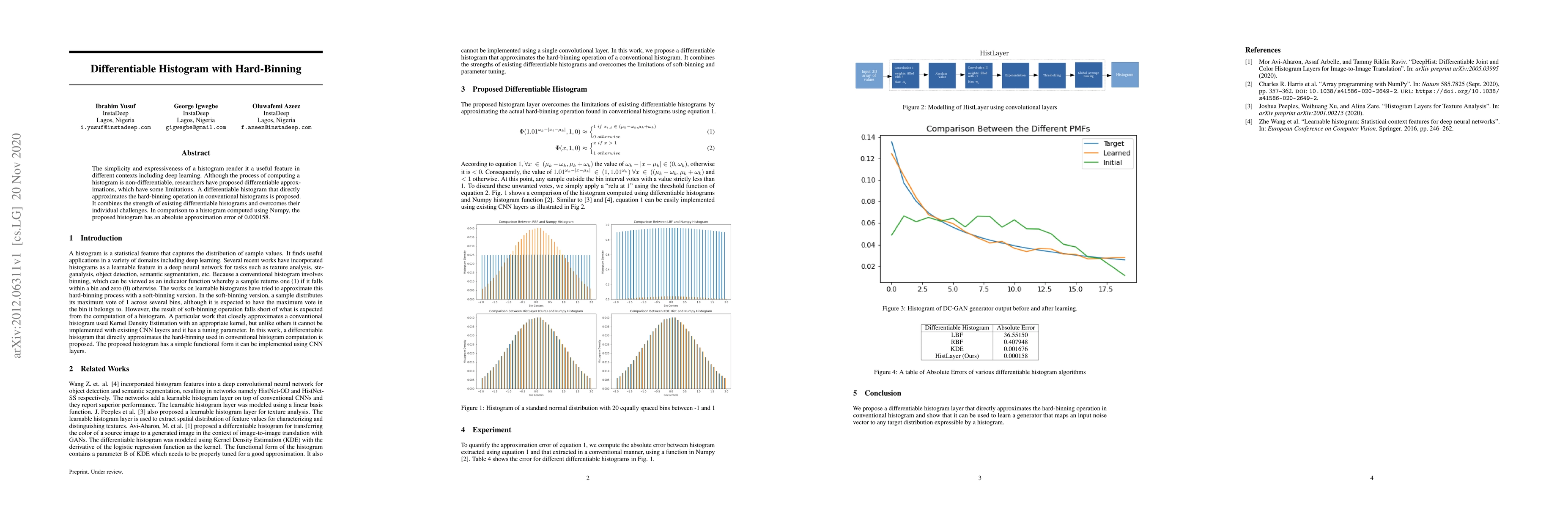 The paper proposes a differentiable histogram that directly approximates the hard-binning operation, combining the strengths of existing methods while addressing their limitations. The proposed method achieves an absolute approximation error of 0.000158 compared to a traditional Numpy histogram.