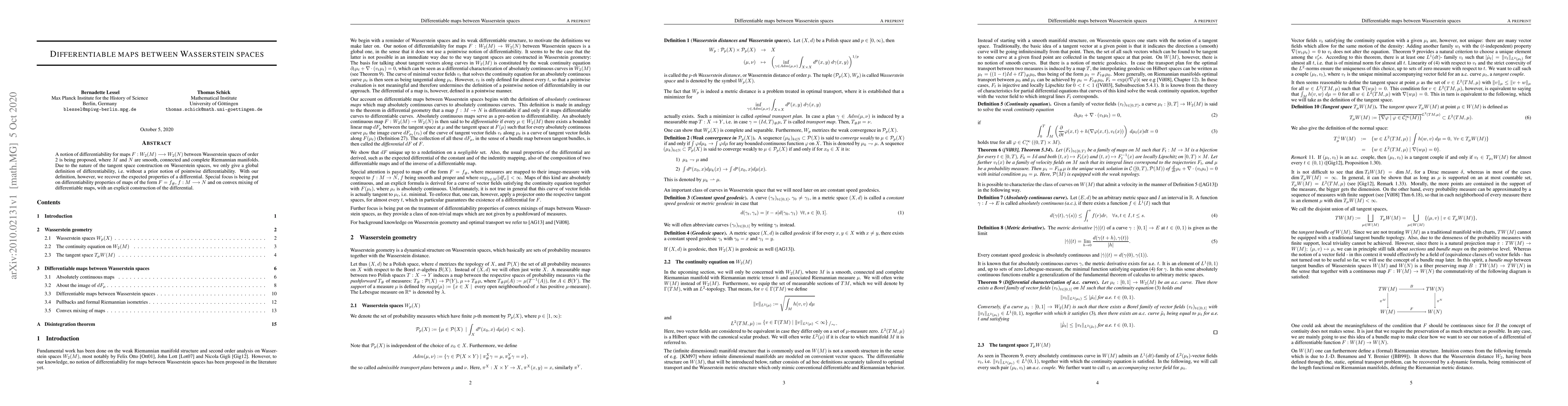 This paper proposes a global definition of differentiability for maps between Wasserstein spaces of order 2 on smooth, connected, and complete Riemannian manifolds, focusing on pushforward maps and convex mixing of differentiable maps. The definition recovers expected properties of differentials without relying on pointwise differentiability.