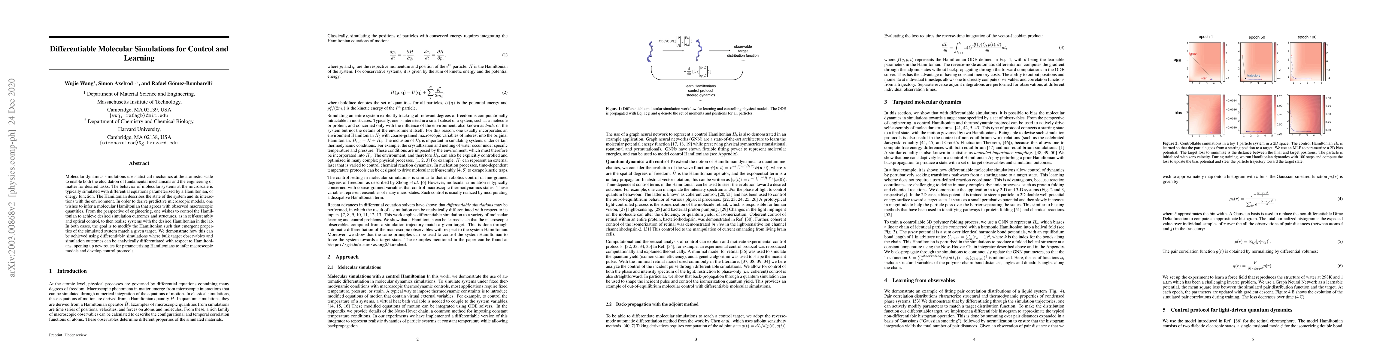 This paper explores differentiable molecular simulations to infer predictive microscopic models and control Hamiltonians for desired outcomes. It leverages analytical differentiation to modify Hamiltonians, enabling the alignment of simulated system properties with target macroscopic quantities.