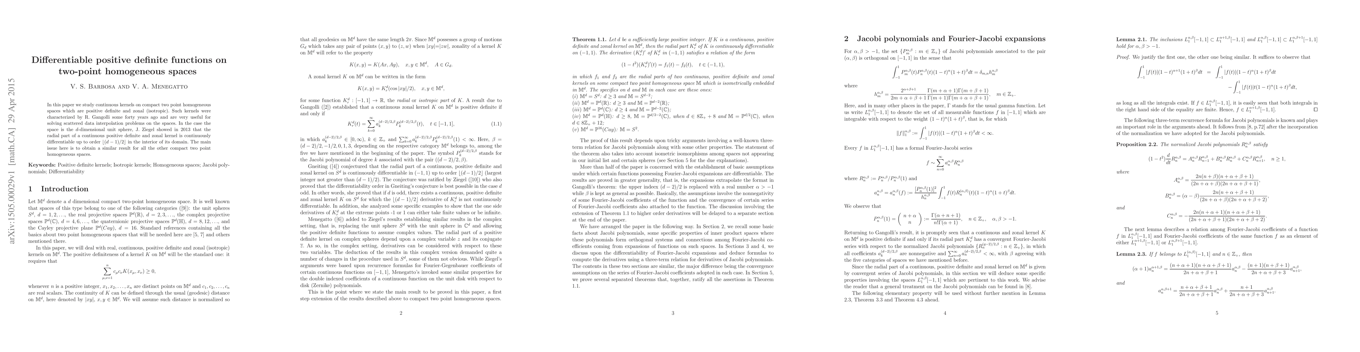 The paper's main technical contribution is the extension of Ziegel's result on the differentiability of radial parts of continuous positive definite and zonal kernels from spheres to all compact two-point homogeneous spaces, along with the introduction and analysis of the sequence {λn}.