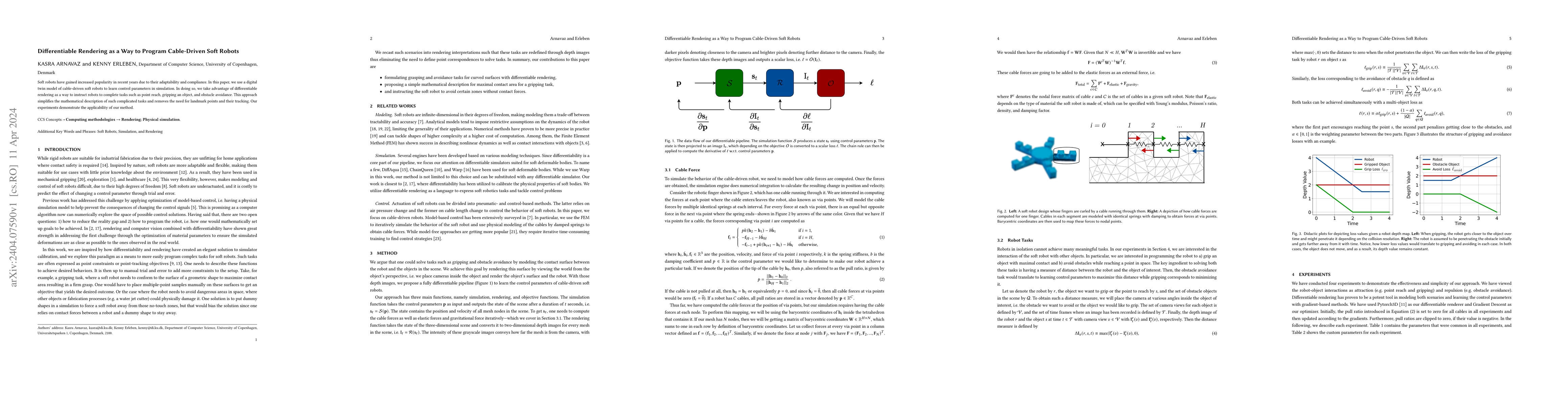 The paper introduces a novel approach to programming cable-driven soft robots using differentiable rendering, simplifying complex tasks through depth image-based formulations.