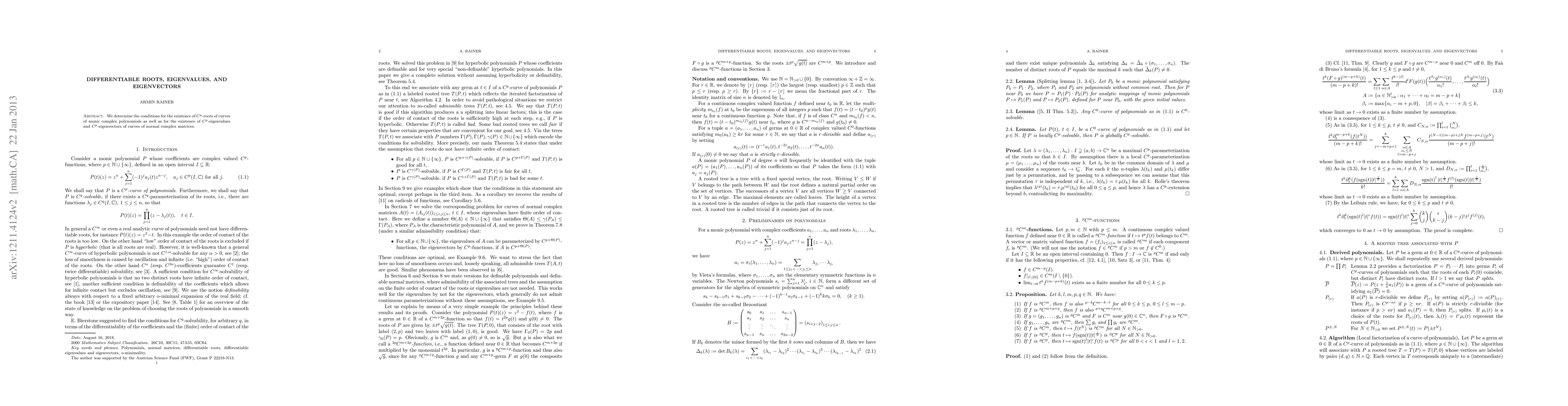This paper explores the existence conditions for differentiable ($C^p$) roots of monic complex polynomials and $C^p$-eigenvalues and $C^p$-eigenvectors of curves of normal complex matrices. It investigates the differentiability properties of these mathematical objects along curves.
