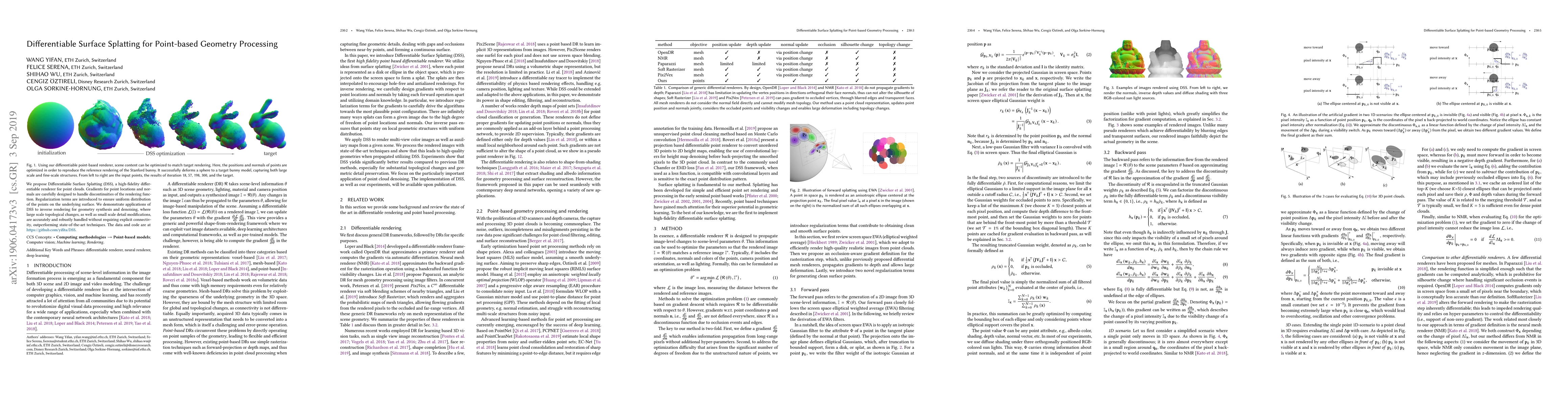 We propose Differentiable Surface Splatting (DSS), a high-fidelity differentiable renderer for point clouds. Gradients for point locations and normals are carefully designed to handle discontinuities of the rendering function. Regularization terms are introduced to ensure uniform distribution of the points on the underlying surface. We demonstrate applications of DSS to inverse rendering for geometry synthesis and denoising, where large scale topological changes, as well as small scale detail modifications, are accurately and robustly handled without requiring explicit connectivity, outperforming state-of-the-art techniques. The data and code are at https://github.com/yifita/DSS.