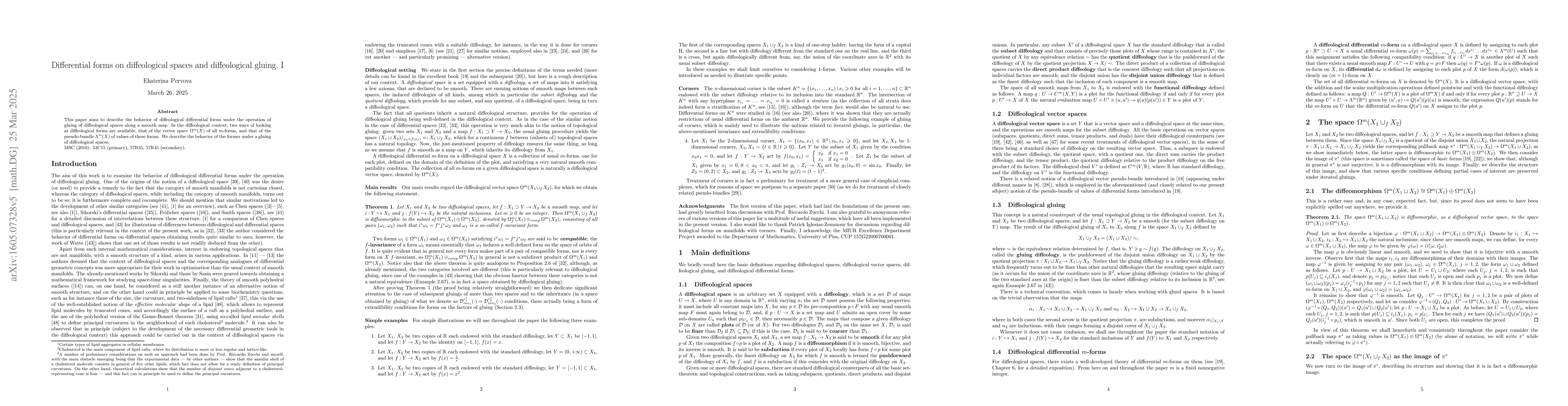 The paper describes the behavior of diffeological differential 1-forms under gluing of diffeological spaces along a smooth map, focusing on the vector space of all 1-forms and the (pseudo-)bundle of 1-forms values.