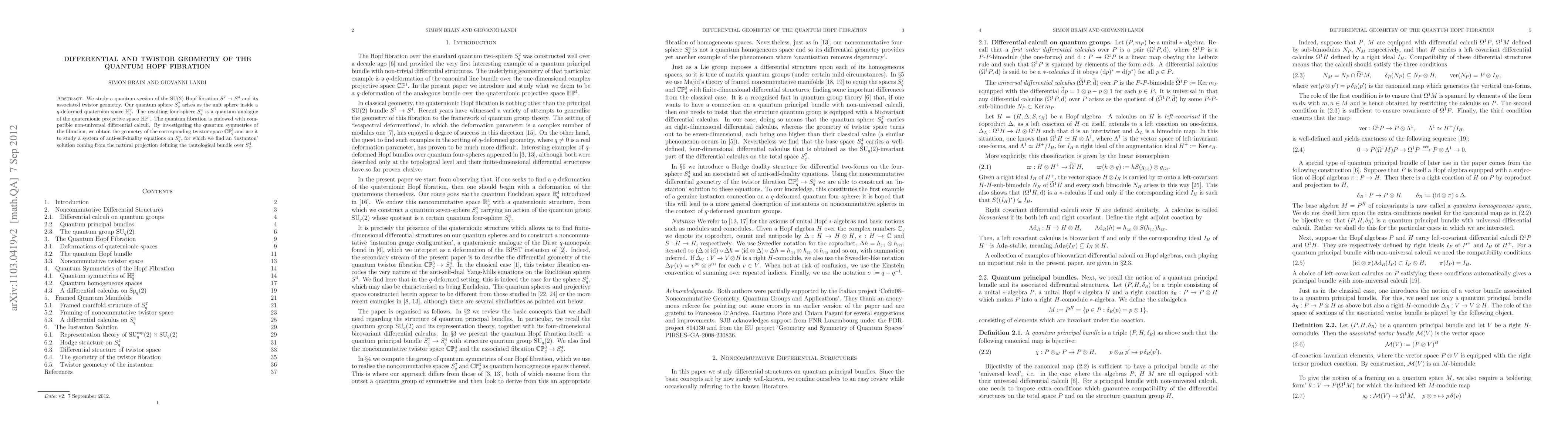This paper explores a quantum version of the SU(2) Hopf fibration, focusing on the quantum sphere $S^7_q$ and its associated twistor geometry. It finds an instanton solution for anti-self-duality equations on the quantum four-sphere $S^4_q$ using the geometry of the twistor space $\mathbb{CP}^3_q$.