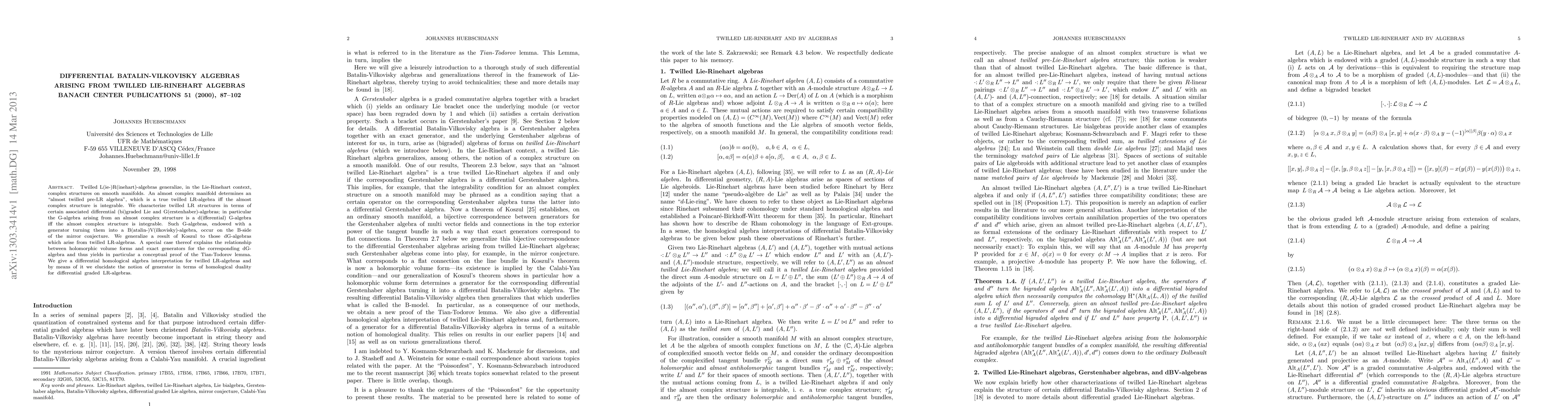 This paper explores the relationship between twilled Lie-Rinehart algebras and differential Batalin-Vilkovisky algebras, showing that twilled LR-algebras correspond to integrable almost complex structures. It characterizes these structures via associated differential graded Lie and Gerstenhaber algebras, providing a conceptual proof of the Tian-Todorov lemma and interpreting the notion of generator in terms of homological duality.
