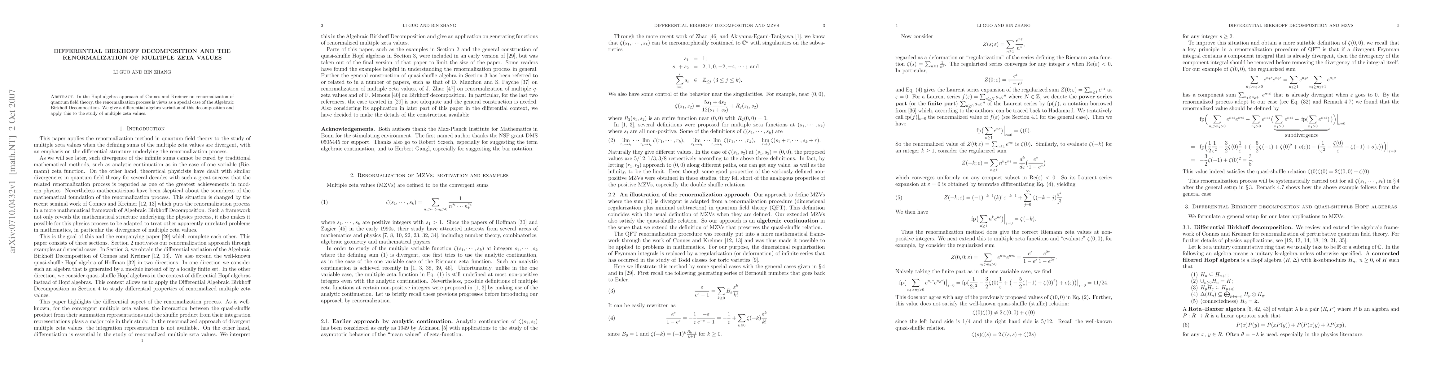Summary: This paper introduces a differential algebra variation of the Algebraic Birkhoff Decomposition used in Connes and Kreimer's Hopf algebra approach to quantum field theory renormalization, and applies this new method to the study of multiple zeta values.
