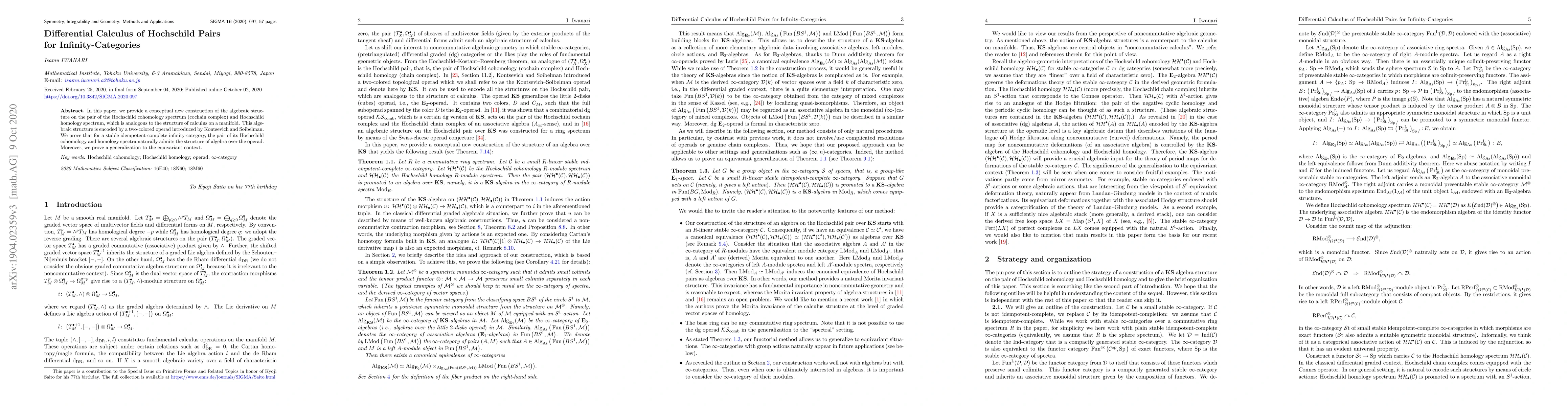 In this paper, we provide a conceptual new construction of the algebraic structure on the pair of the Hochschild cohomology spectrum (cochain complex) and Hochschild homology spectrum, which is analogous to the structure of calculus on a manifold. This algebraic structure is encoded by a two-colored operad introduced by Kontsevich and Soibelman. We prove that for a stable idempotent-complete infinity-category, the pair of its Hochschild cohomology and homology spectra naturally admits the structure of algebra over the operad. Moreover, we prove a generalization to the equivariant context.