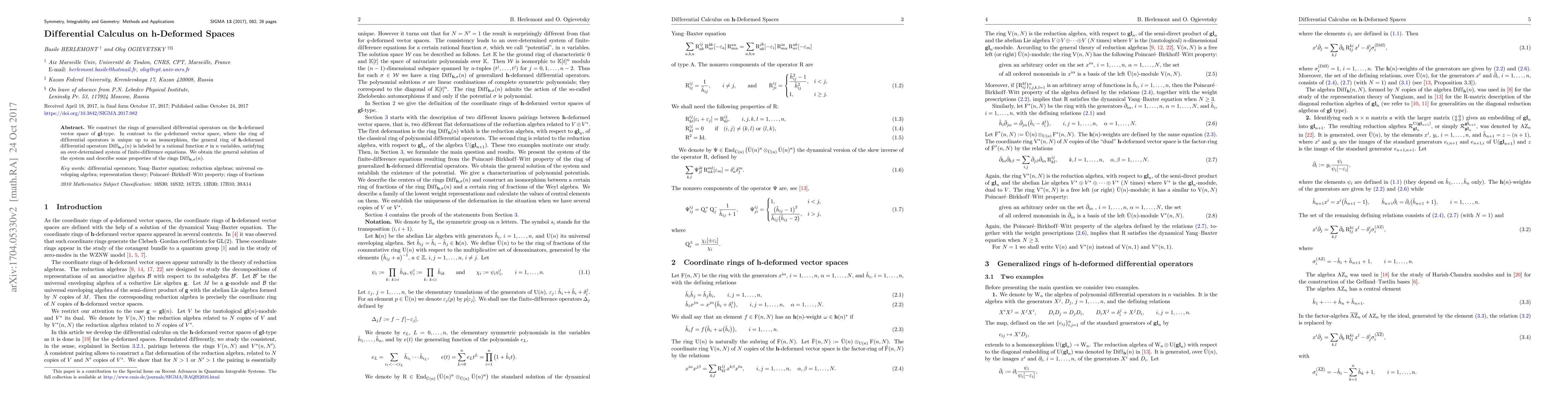 This paper constructs rings of generalized differential operators on ${\bf h}$-deformed vector spaces of ${\bf gl}$-type, revealing that unlike $q$-deformed spaces, the ${\bf h}$-deformed differential operators are labeled by a rational function $\sigma$ and are governed by a system of finite-difference equations. The authors provide the general solution to this system and discuss properties of these differential operator rings.