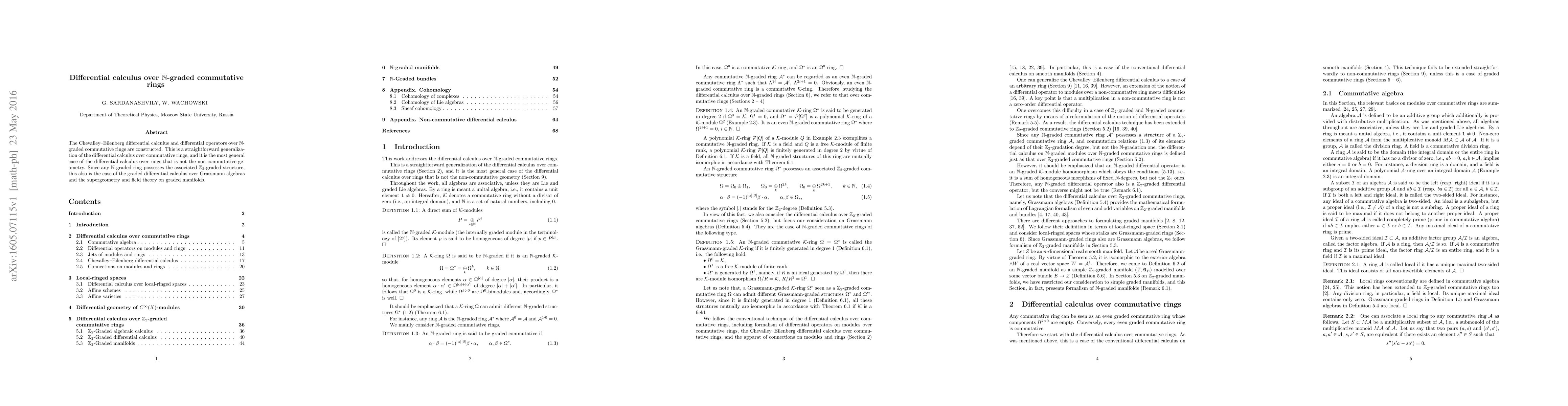 The Chevalley-Eilenberg differential calculus and differential operators over N-graded commutative rings are constructed. This is a straightforward generalization of the differential calculus over commutative rings, and it is the most general case of the differential calculus over rings that is not the non-commutative geometry. Since any N-graded ring possesses the associated Z_2-graded structure, this also is the case of the graded differential calculus over Grassmann algebras and the supergeometry and field theory on graded manifolds.