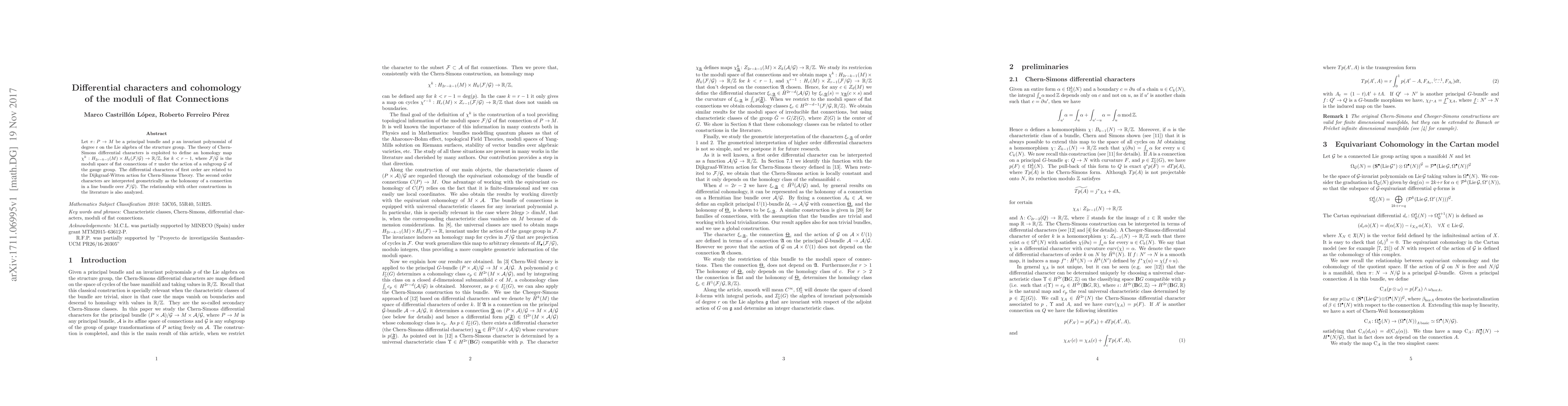 This paper explores the use of Chern-Simons differential characters to define a homology map relating the moduli space of flat connections and topological invariants of the underlying manifold, emphasizing the role of Dijkgraaf-Witten action and holonomy in the geometric interpretation of these characters.