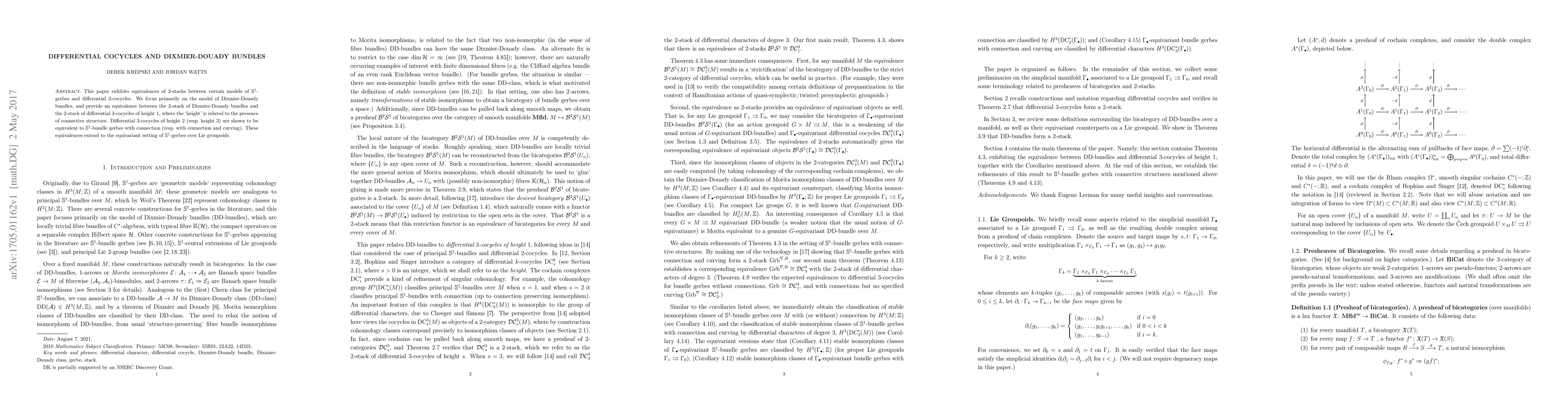 This paper exhibits equivalences of 2-stacks between certain models of $\mathbb{S}^1$-gerbes and differential 3-cocycles. We focus primarily on the model of Dixmier-Douady bundles, and provide an equivalence between the 2-stack of Dixmier-Douady bundles and the 2-stack of differential 3-cocycles of height 1, where the 'height' is related to the presence of connective structure. Differential 3-cocycles of height 2 (resp. height 3) are shown to be equivalent to $\mathbb{S}^1$-bundle gerbes with connection (resp. with connection and curving). These equivalences extend to the equivariant setting of $\mathbb{S}^1$-gerbes over Lie groupoids.