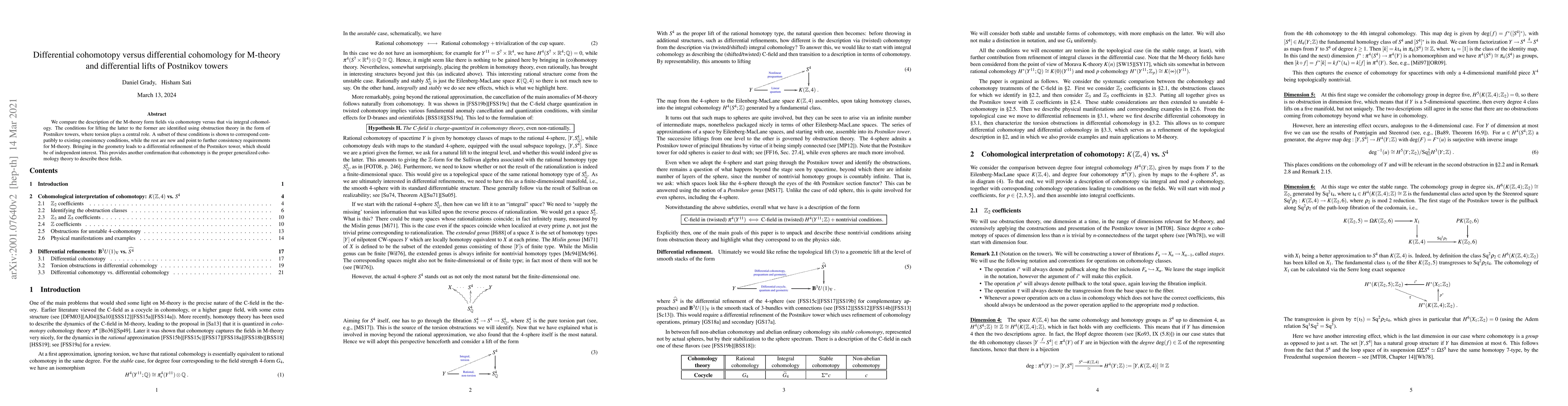 This paper compares M-theory's form fields described by cohomotopy versus integral cohomology, identifying conditions for lifting via Postnikov towers with torsion playing a key role. It finds new consistency requirements for M-theory and highlights the relevance of differential refinement of the Postnikov tower for geometry.