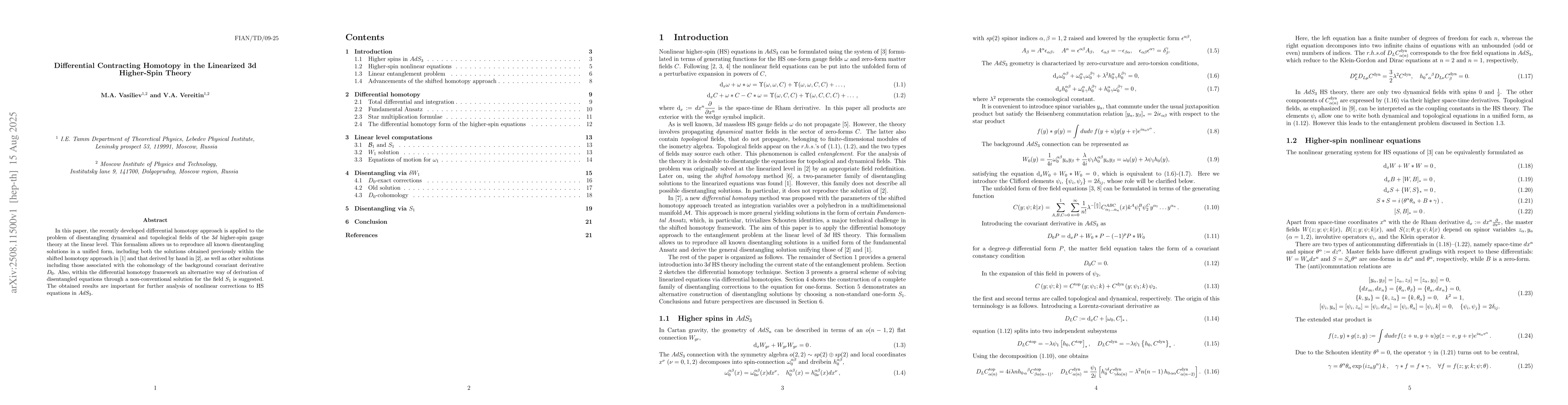 In this paper, the recently developed differential homotopy approach is applied to the problem of disentangling dynamical and topological fields of the $3d$ higher-spin gauge theory at the linear level. This formalism allows us to reproduce all known disentangling solutions in a unified form, including both the solutions obtained previously within the shifted homotopy approach in \cite{Korybut:2022kdx} and that derived by hand in \cite{Vasiliev:1992ix}, as well as other solutions including those associated with the cohomology of the background covariant derivative $D_0$. Also, within the differential homotopy framework an alternative way of derivation of disentangled equations through a non-conventional solution for the field $S_1$ is suggested. The obtained results are important for further analysis of nonlinear corrections to HS equations in $AdS_3$.