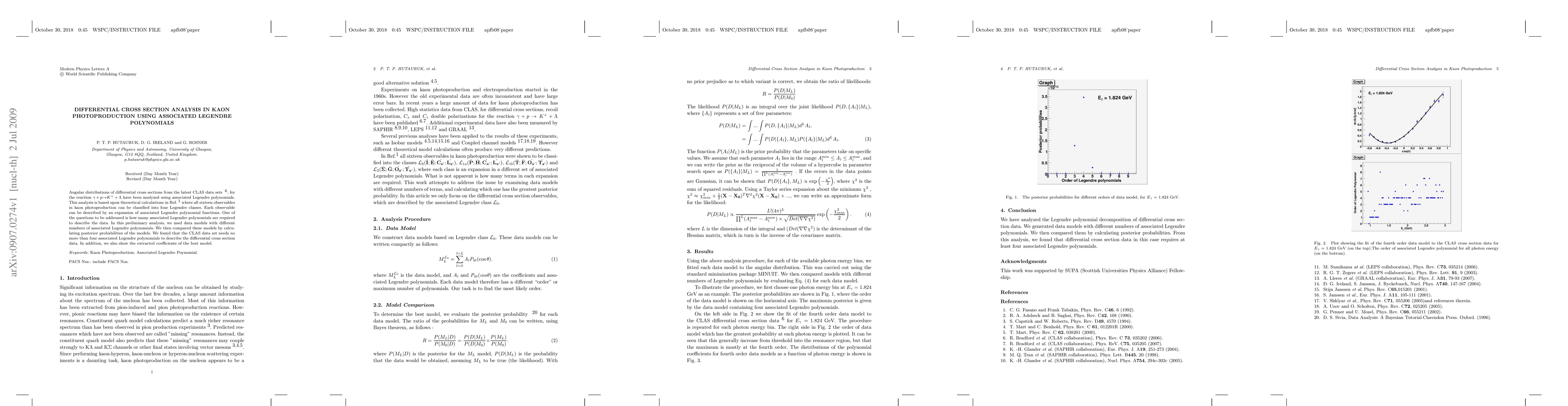 Angular distributions of differential cross sections from the latest CLAS data sets \cite{bradford}, for the reaction ${\gamma}+p {\to} K^{+} + {\Lambda}$ have been analyzed using associated Legendre polynomials. This analysis is based upon theoretical calculations in Ref. \cite{fasano} where all sixteen observables in kaon photoproduction can be classified into four Legendre classes. Each observable can be described by an expansion of associated Legendre polynomial functions. One of the questions to be addressed is how many associated Legendre polynomials are required to describe the data. In this preliminary analysis, we used data models with different numbers of associated Legendre polynomials. We then compared these models by calculating posterior probabilities of the models. We found that the CLAS data set needs no more than four associated Legendre polynomials to describe the differential cross section data. In addition, we also show the extracted coefficients of the best model.