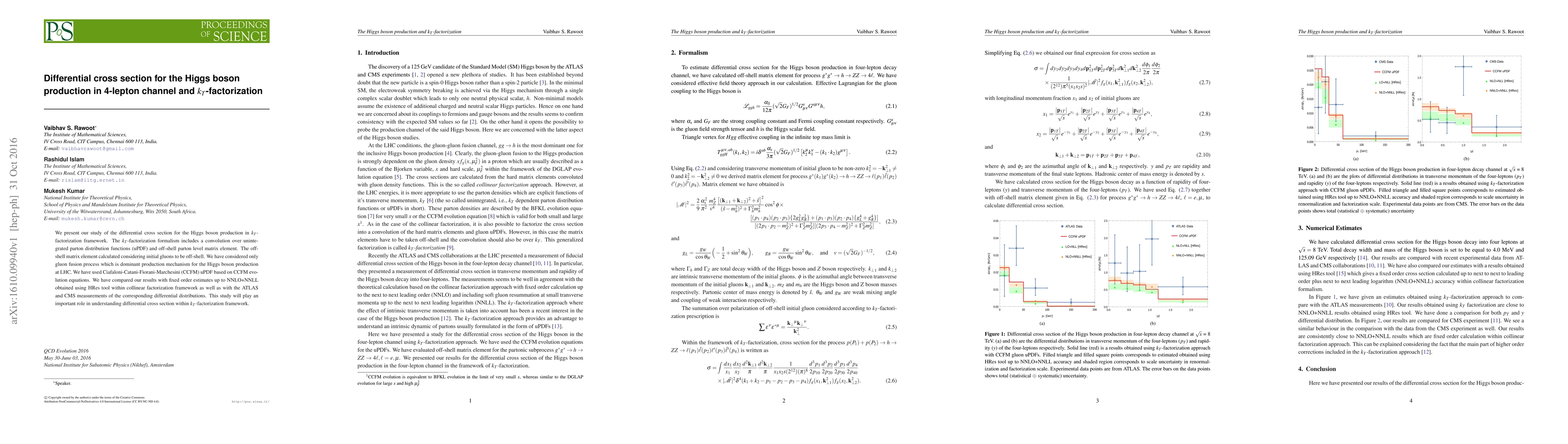 This study investigates the differential cross section for Higgs boson production in the 4-lepton channel using the $k_T$-factorization framework, focusing on the gluon fusion process. Results are compared with fixed-order estimates and experimental measurements from ATLAS and CMS.