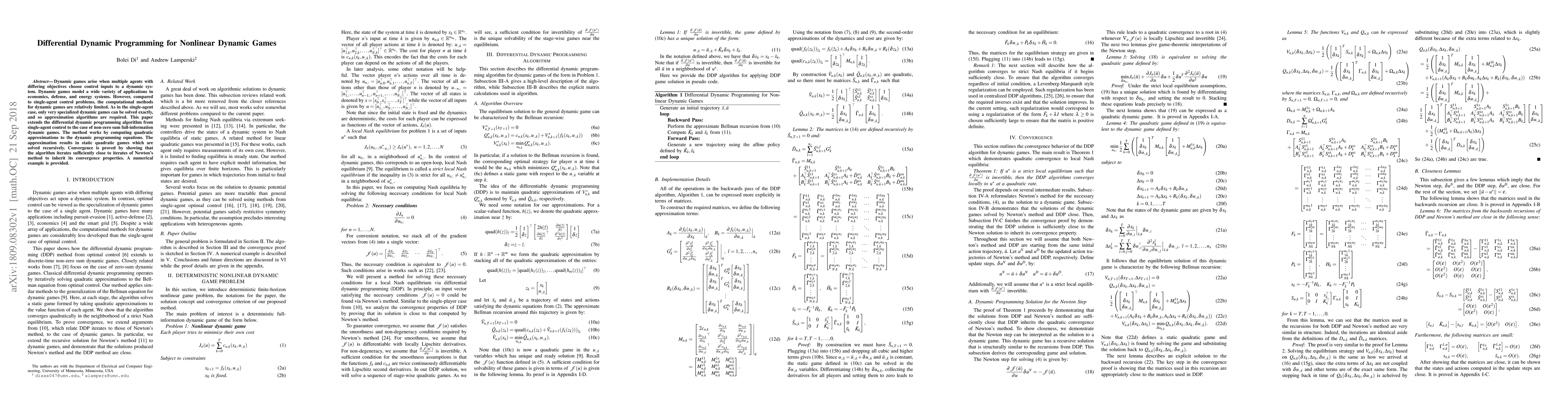 Dynamic games arise when multiple agents with differing objectives choose control inputs to a dynamic system. Dynamic games model a wide variety of applications in economics, defense, and energy systems. However, compared to single-agent control problems, the computational methods for dynamic games are relatively limited. As in the single-agent case, only very specialized dynamic games can be solved exactly, and so approximation algorithms are required. This paper extends the differential dynamic programming algorithm from single-agent control to the case of non-zero sum full-information dynamic games. The method works by computing quadratic approximations to the dynamic programming equations. The approximation results in static quadratic games which are solved recursively. Convergence is proved by showing that the algorithm iterates sufficiently close to iterates of Newton's method to inherit its convergence properties. A numerical example is provided.
