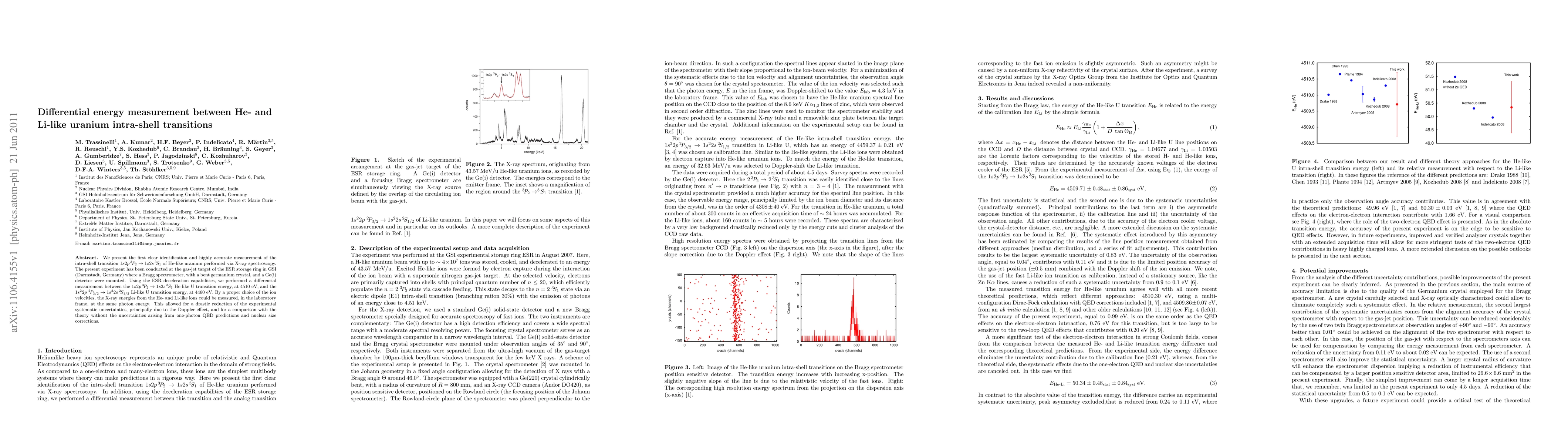 This paper reports the first precise measurement of the intra-shell transition $1s2p\, ^3P_2 \to 1s2s\, ^3S_1$ in He-like uranium using X-ray spectroscopy, and compares it with the Li-like uranium transition energy, achieving a significant reduction in systematic uncertainties. The results provide a stringent test for theoretical predictions in high-Z ions.