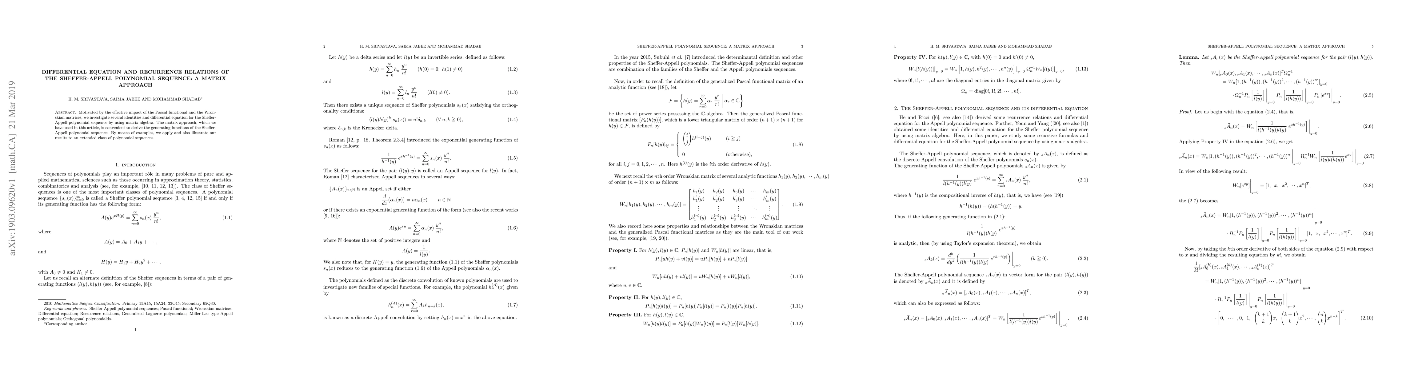 Motivated by the effective impact of the Pascal functional and the Wronskian matrices, we investigate several identities and differential equation for the Sheffer-Appell polynomial sequence by using matrix algebra. The matrix approach, which we have used in this article, is convenient to derive the generating functions of the Sheffer-Appell polynomial sequence. By means of examples, we apply and also illustrate our results to an extended class of polynomial sequences.