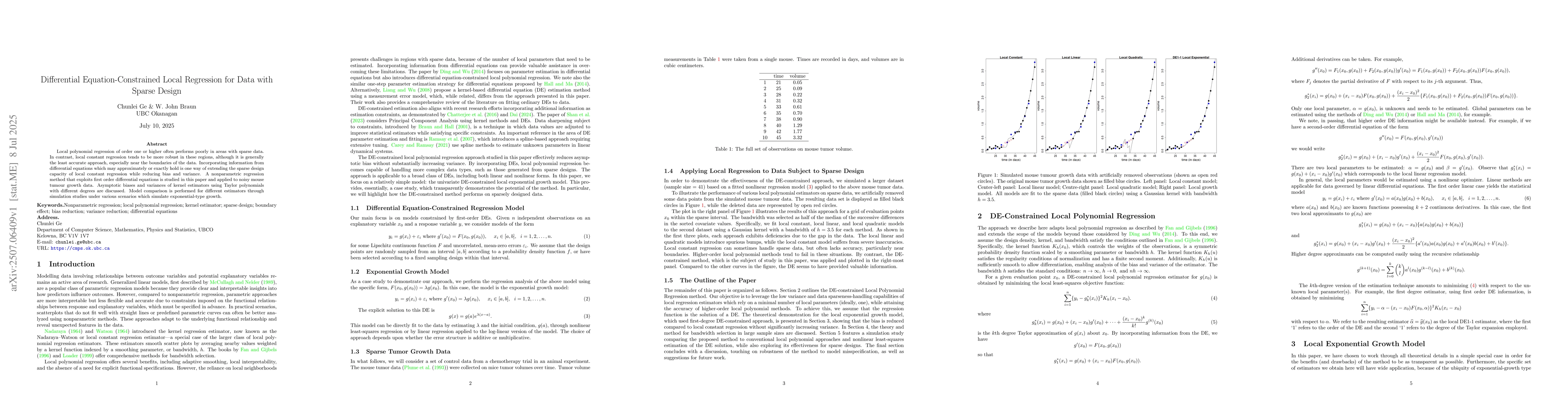 Local polynomial regression of order one or higher often performs poorly in areas with sparse data. In contrast, local constant regression tends to be more robust in these regions, although it is generally the least accurate approach, especially near the boundaries of the data. Incorporating information from differential equations, which may approximately or exactly hold, is one way of extending the sparse design capacity of local constant regression while reducing bias and variance. A nonparametric regression method that exploits first-order differential equations is studied in this paper and applied to noisy mouse tumour growth data. Asymptotic biases and variances of kernel estimators using Taylor polynomials with different degrees are discussed. Model comparison is performed for different estimators through simulation studies under various scenarios that simulate exponential-type growth.