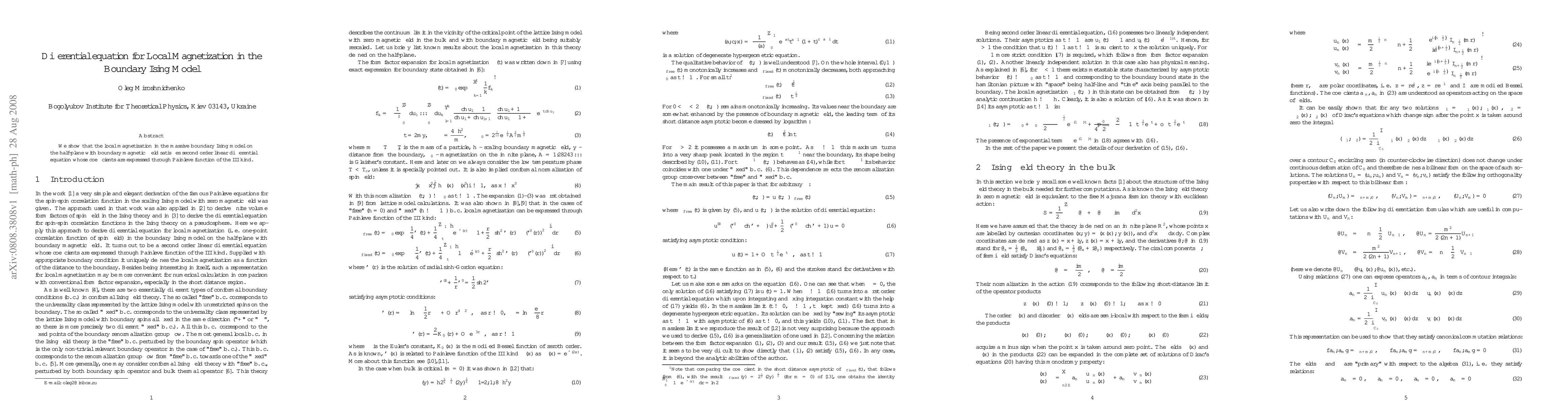 Summary: The research demonstrates that local magnetization in the massive boundary Ising model adheres to a second-order linear differential equation, with coefficients derived from the Painlevé function of the third kind. This provides a mathematical framework for understanding magnetization behavior in boundary conditions.